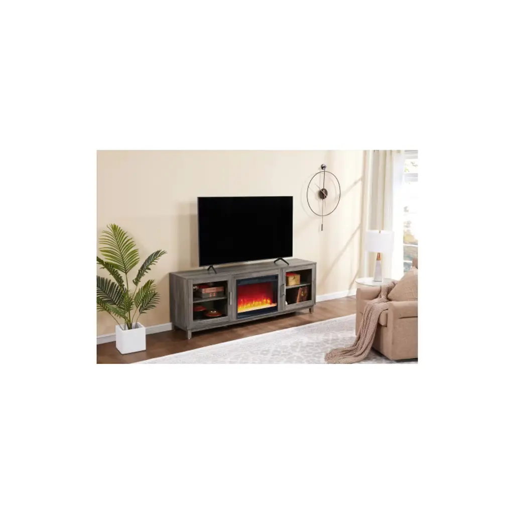 Tobili 55 Inch Tv Media Stand With Fireplace Inserts Heater,gray Wash Color