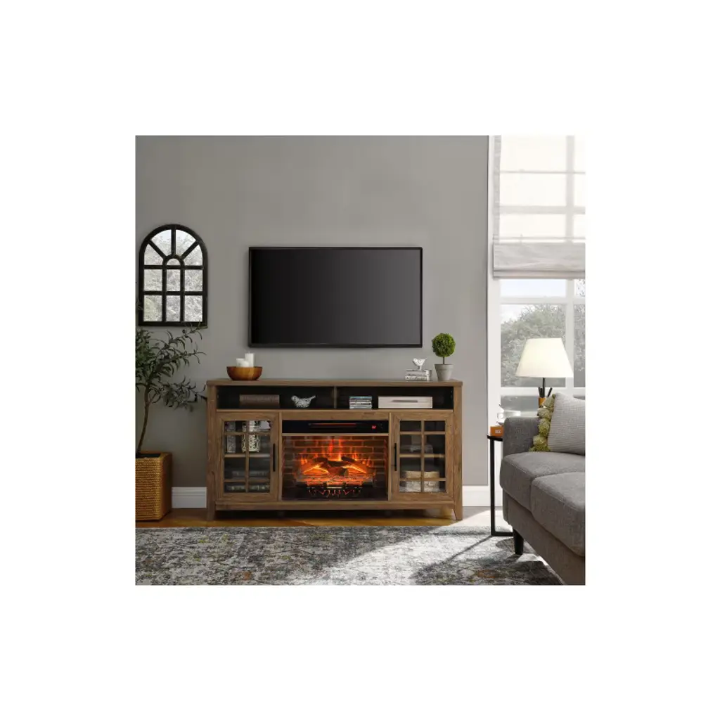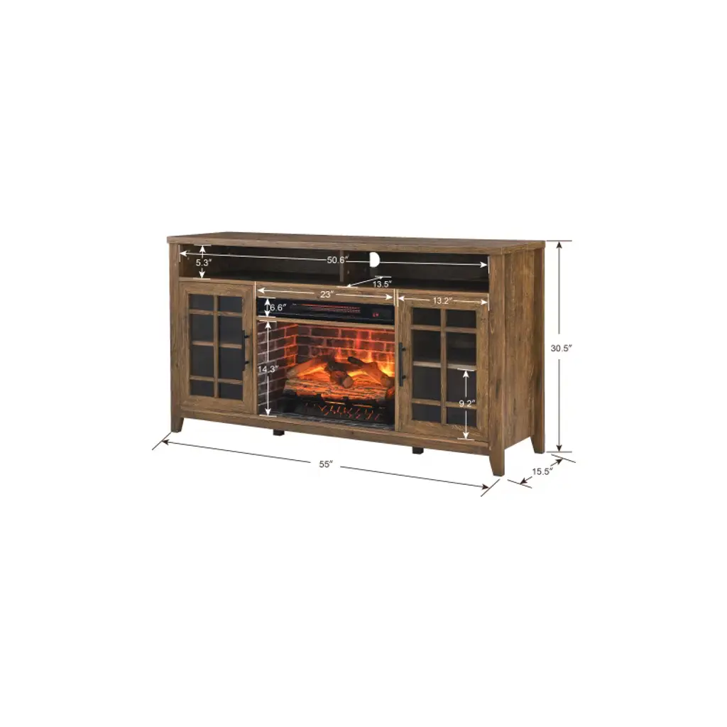 Tobili 55 Inch Tv Media Stand With Fireplace Kd Inserts Heater,reclaimed Barnwood Color