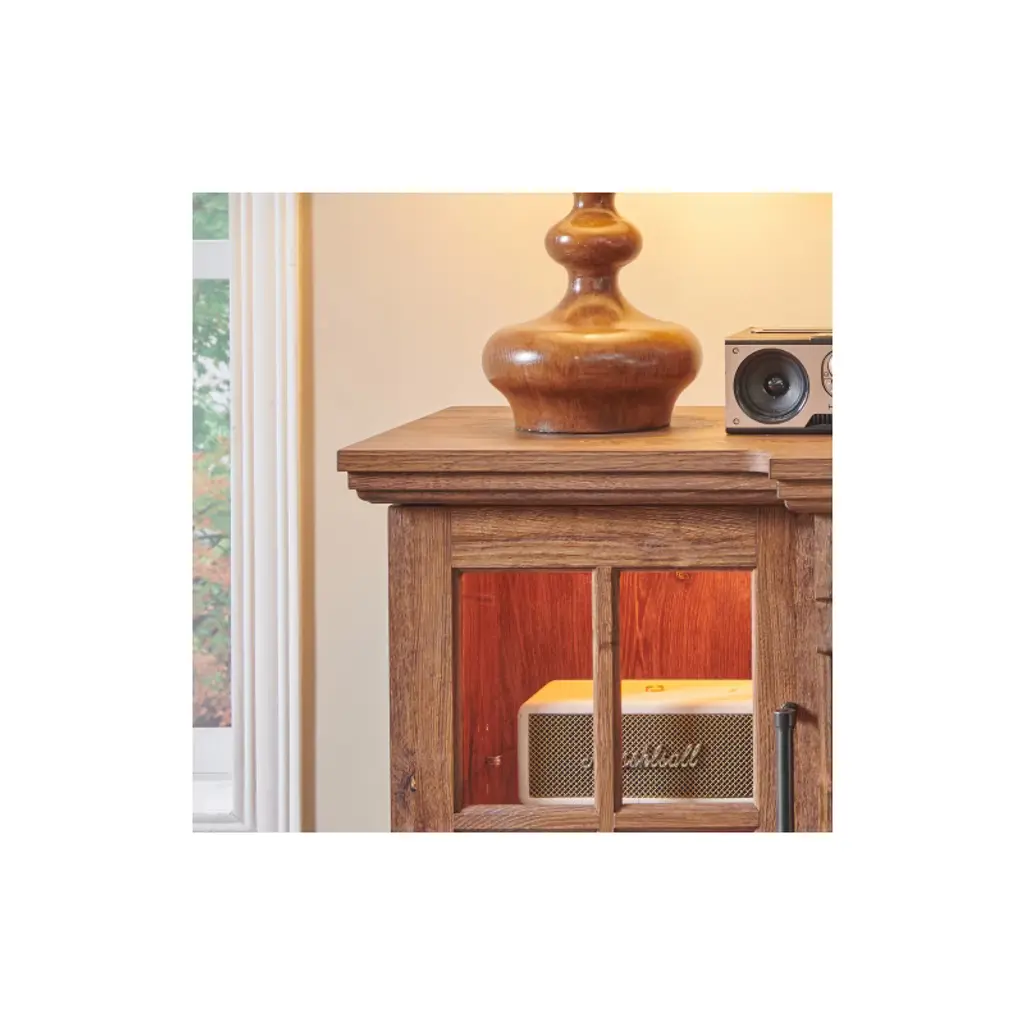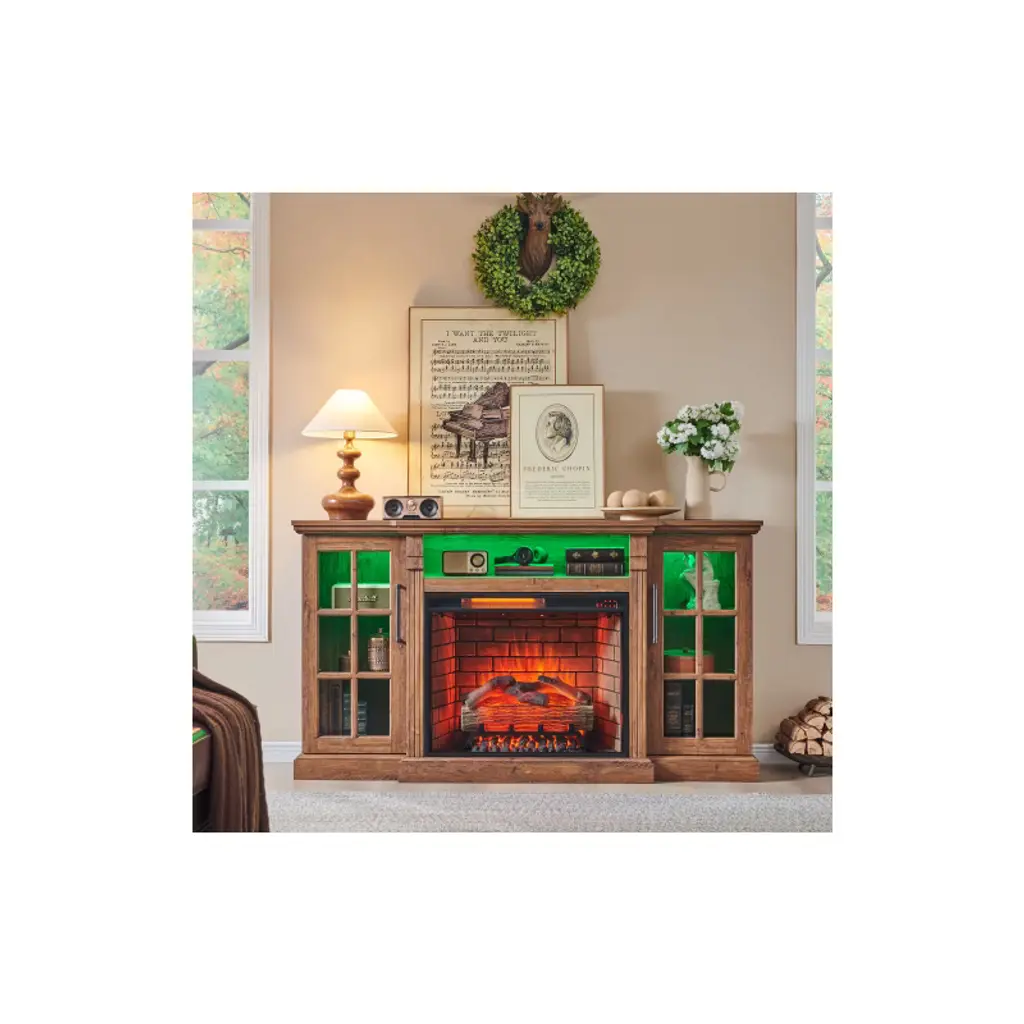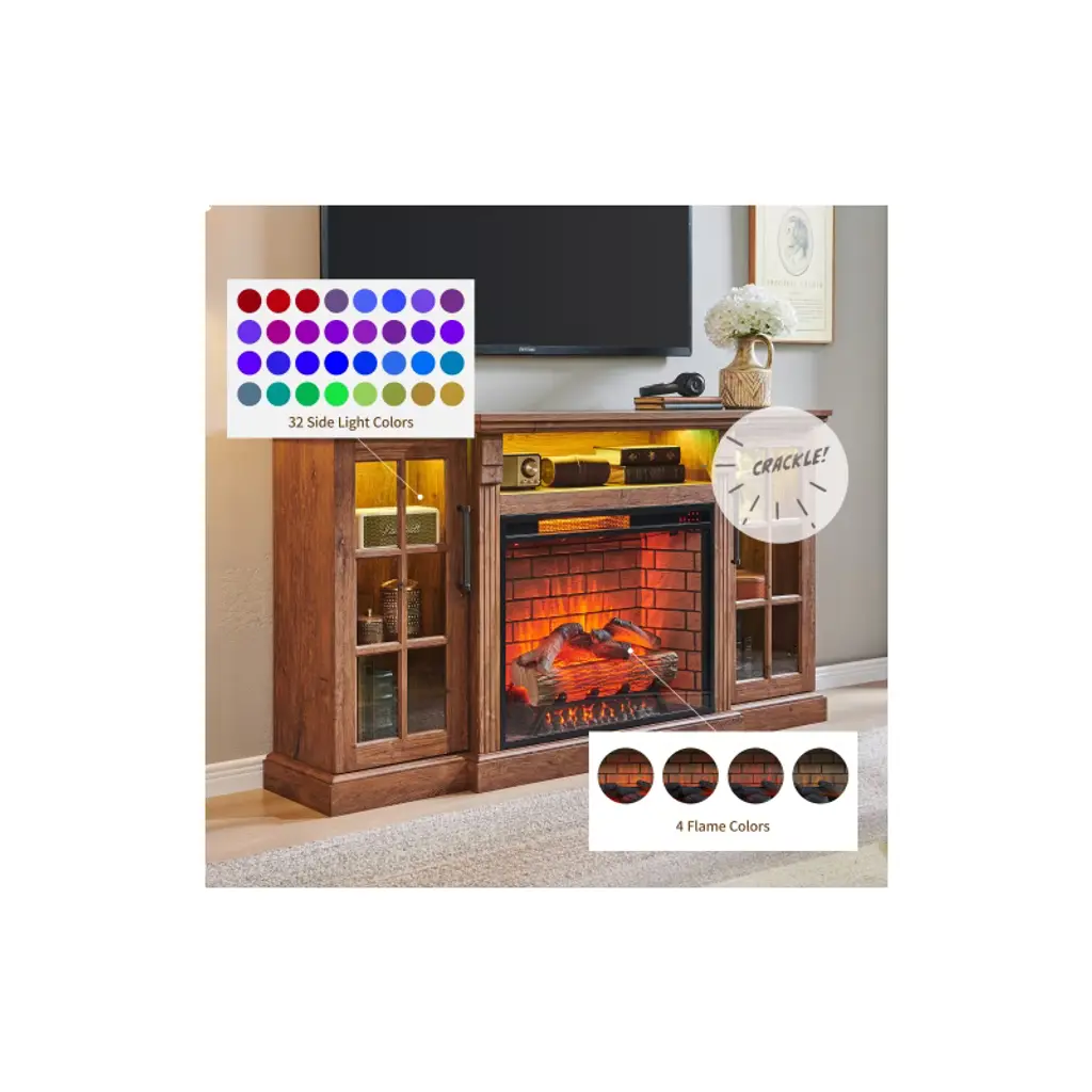 Living room C-suite storage + Entertainment centre *Cabinets with adjustable shelves¡ªperfect for organizing all your essentials *Adjustable LED lighting options create a customized atmosphere *3D Realistic Flame, Seasonal Warmth and Ambience Goddess *Western modern with speaker: built-in speaker simulating the sound of charcoal crackling Solid wood texture, details witness the quality Natural and delicate texture, wear-resistant and scratch-resistant, load-bearing and stable, what you see is what you get. Storage Cabinet With Adjustable Shelf & Led Lights Unique Visible Side CabinetsThree transparent glass doors with attractive LED lights, making it a chic and functional piece. Realistic Flame & Fire Crackling Sound The electric fireplace brings a warm and cozy atmosphere to your home.Realistic dancing flames and burning log effect, built-in speaker simulating the sound of charcoal cracking, give you a real fireplace-experience. Give your room a dreamlike ambiance