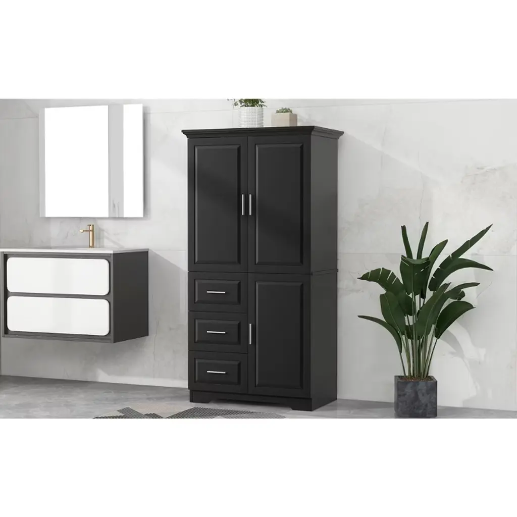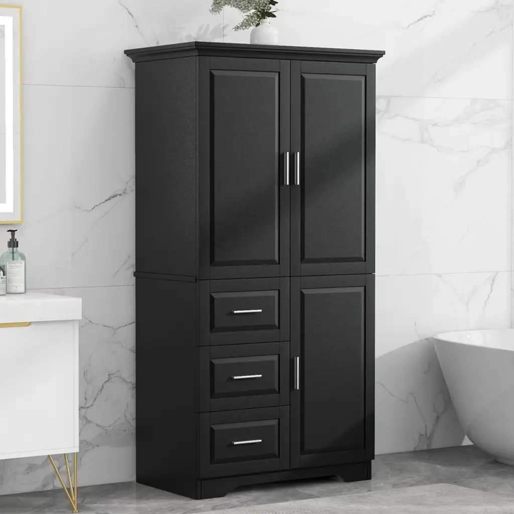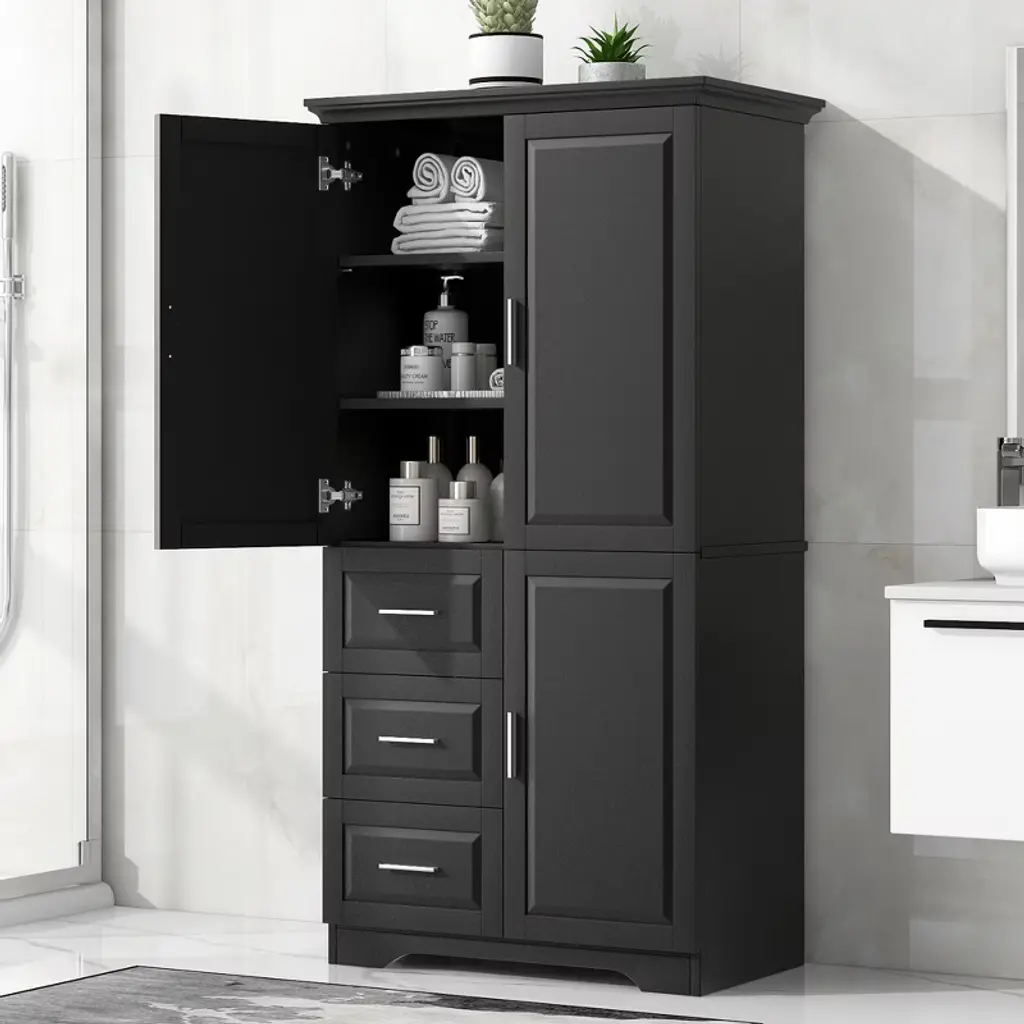 Tobili Tall And Wide Storage Cabinet With Doors For Bathroom/office, Three Drawers, Black