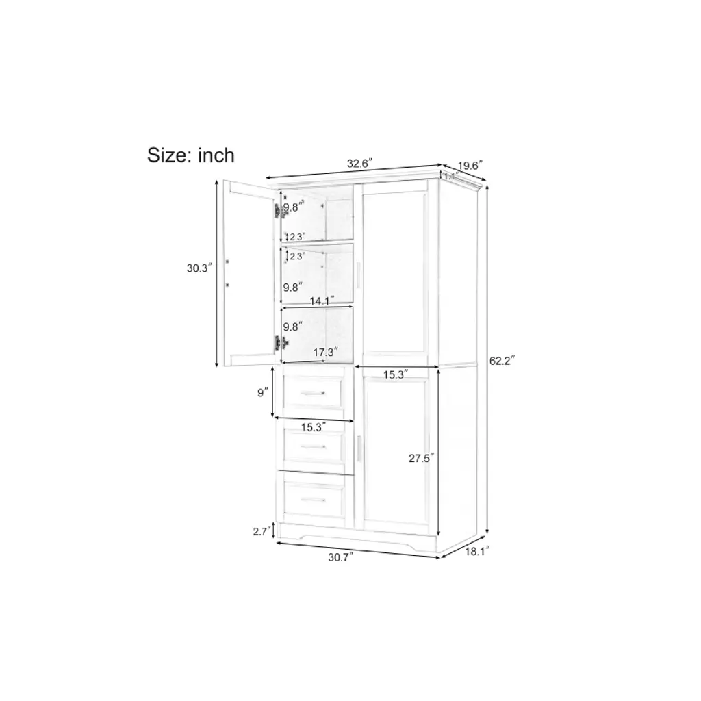 Material: The main frame and the doors of this cabinet are made of high-quality MDF boards with painted finish. Importantly, the surface, feeling smooth, is water-proof and easy to clean. The door handle, hinge and drawer slide is made of metal, which is sturdy and durable. Ample Storage: Upper enclosed cabinet with doors has three tiers to accommodate decorations or articles for daily use. As for lower part, there are three big drawers on the left and one cabinet on the right to provide more storage space.You can put stuff in it, such as shampoo, towel, body lotion, tissues and storage basket etc.. Adjustable Shelf: The shelf in the cabinet can be adjusted up and down to different heights. Thus, it can be used to hold items of different size, which totally satisfies different storage needs. Wide Application: This tall and wide storage cabinet is widely applicable. You can put it in the office as a bookcase, bathroom as a storage cabinet, or kitchen as a pantry etc..