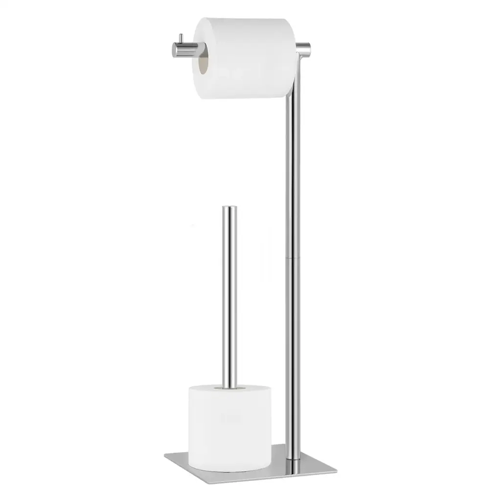 Effortless Assembly: The freestanding toilet paper holder is designed for easy and quick assembly, allowing you to enjoy its functional and aesthetic benefits without the hassle of a complex installation process. The included instructions and labeled components ensure a smooth setup, making it a convenient addition to your bathroom decor. Versatile Placement: The neutral retro dark brown tone of this bathroom tissue organizer complements a variety of interior styles. Its freestanding nature means you can place it anywhere in your bathroom without the need for wall mounting, providing flexibility in choosing the most convenient and visually appealing location for your toilet paper storage. Space-Saving Elegance: With its innovative design, this toilet tissue holder efficiently utilizes space by accommodating four rolls of toilet paper simultaneously. The vertical reserved rod for spare rolls eliminates the need for additional cabinet storage, helping you maximize the available space in your bathroom for other essentials. Premium Durability: Crafted from high-quality metal material, the toilet tissue holder stand is not only resistant to corrosion and rust but also offers long-lasting durability. The sturdy weight-type square base ensures stability, preventing any wobbling or tipping, and providing a reliable solution for your toilet paper storage needs. Thoughtful Anti-Slip Design: The inclusion of an anti-slip mat underscores the attention to detail in the design of this toilet paper holder. The mat not only protects your floor from potential scratches but also adds an extra layer of stability, ensuring that the holder stays securely in place while you retrieve or replace toilet paper rolls. This thoughtful feature enhances the overall user experience by prioritizing both functionality and protection.