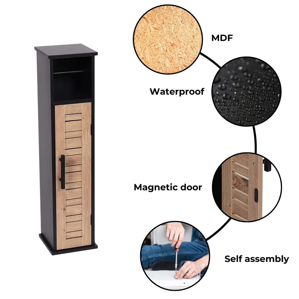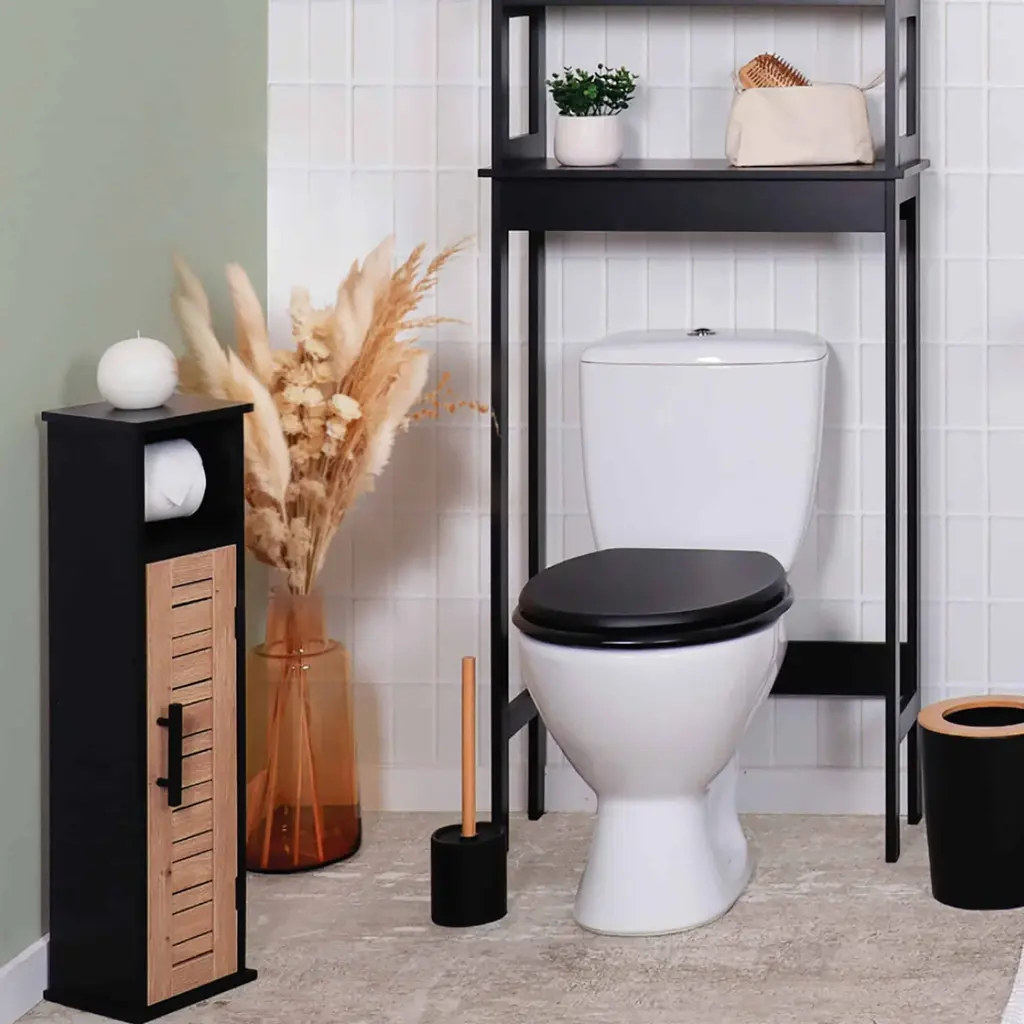 Keep your bathroom organized and stylish with this Toilet Paper Holder with Storage. Made from bamboo or MDF with a natural finish, this bathroom cabinet fits snugly next to your toilet. It uses vertical space effectively. Moreover, this floor cabinet is perfect for small bathrooms or spaces where storage is limited. It offers a chic and practical solution. The top compartment provides easy access to a single roll of toilet paper. In addition, the door below opens to reveal an adjustable shelf. It allows you to store rolls or other bathroom essentials like cleaning products or small toiletries. Furthermore, the magnetic door ensures secure storage while providing a smooth, easy-to-use opening mechanism. Moreover, with simple assembly instructions and all the required hardware included, this bathroom storage cabinet is quick to put together. It´s an ideal choice for those looking for a hassle-free storage option. Compact yet spacious, this toilet storage cabinet is an excellent choice for homeowners looking for functional storage without sacrificing style.