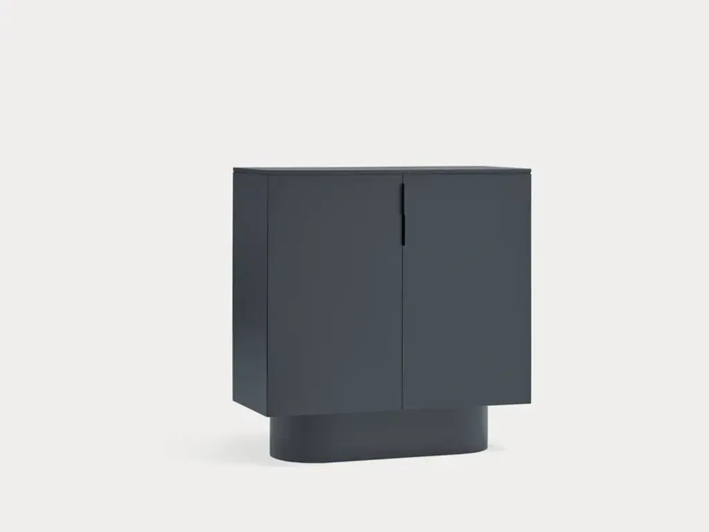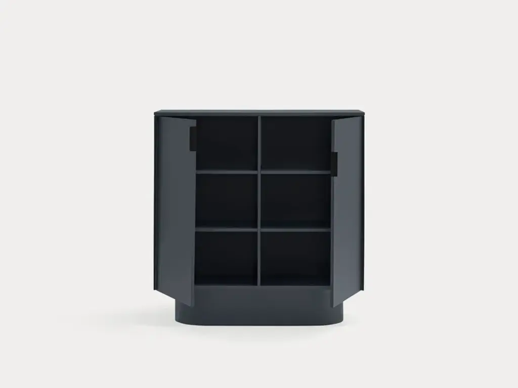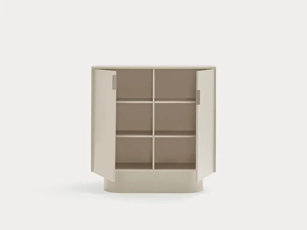 Totem is a lacquered MDF cabinet with two swing doors and storage compartments.Totem is a collection that, with its almost monolithic appearance, invites us to contemplate each piece as if it were a work of sculpture, transcending the boundaries between function and form.