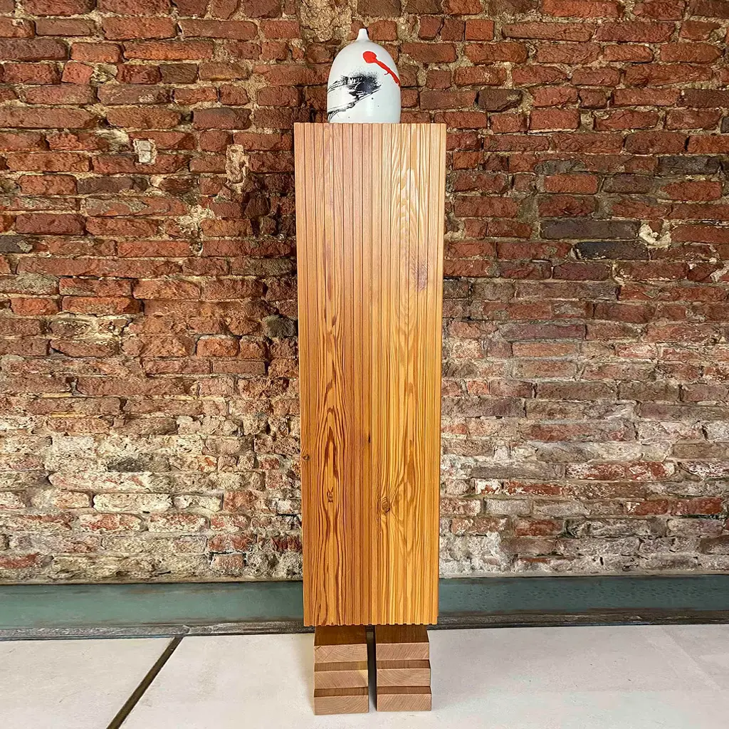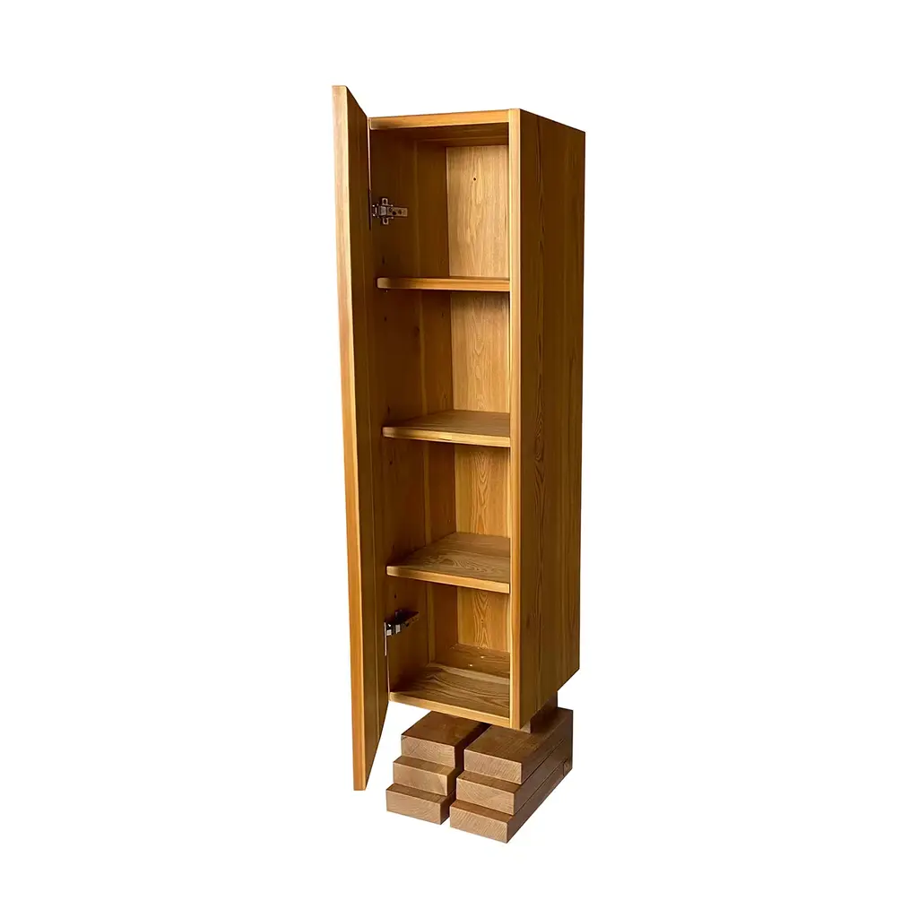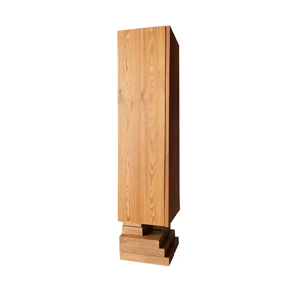 An original 1998 project by Pietro Meccani, this extraordinary sculptural cabinet belongs to a limited edition of 20 numbered pieces relaunched in 2022. Handcrafted of European larch and cherry wood, it features one door and three inner compartments. Exceptionally striking in its bold visual allure, it is a refined collector's piece that will withstand the test of time. Customizable in wood essence and size, please ask the Concierge for options.