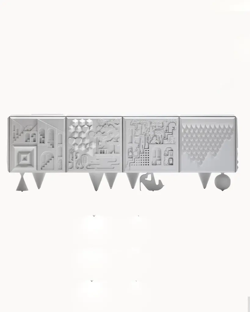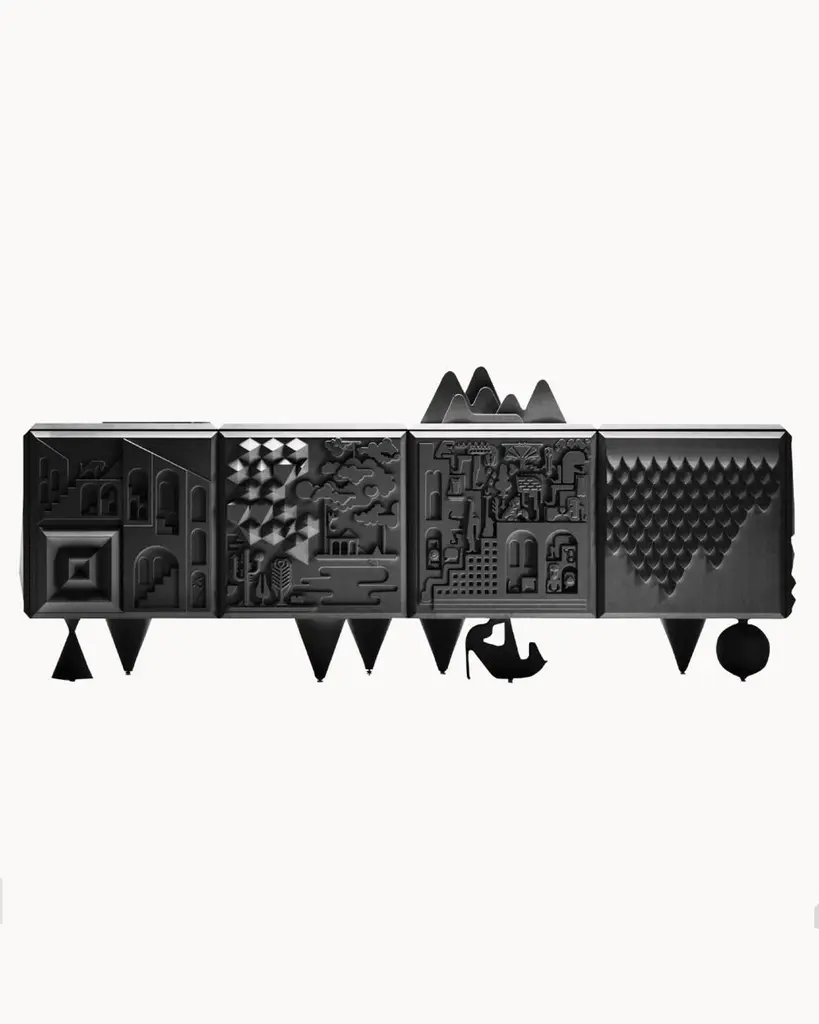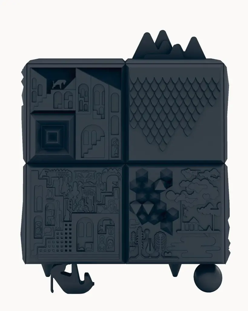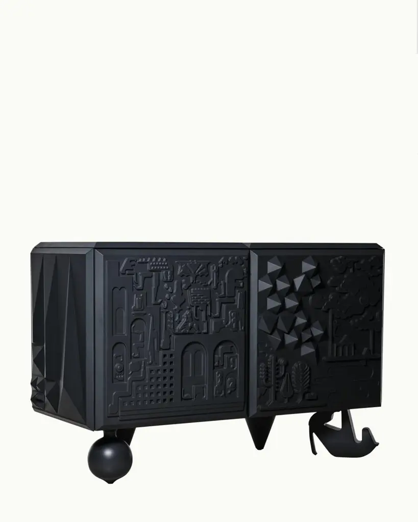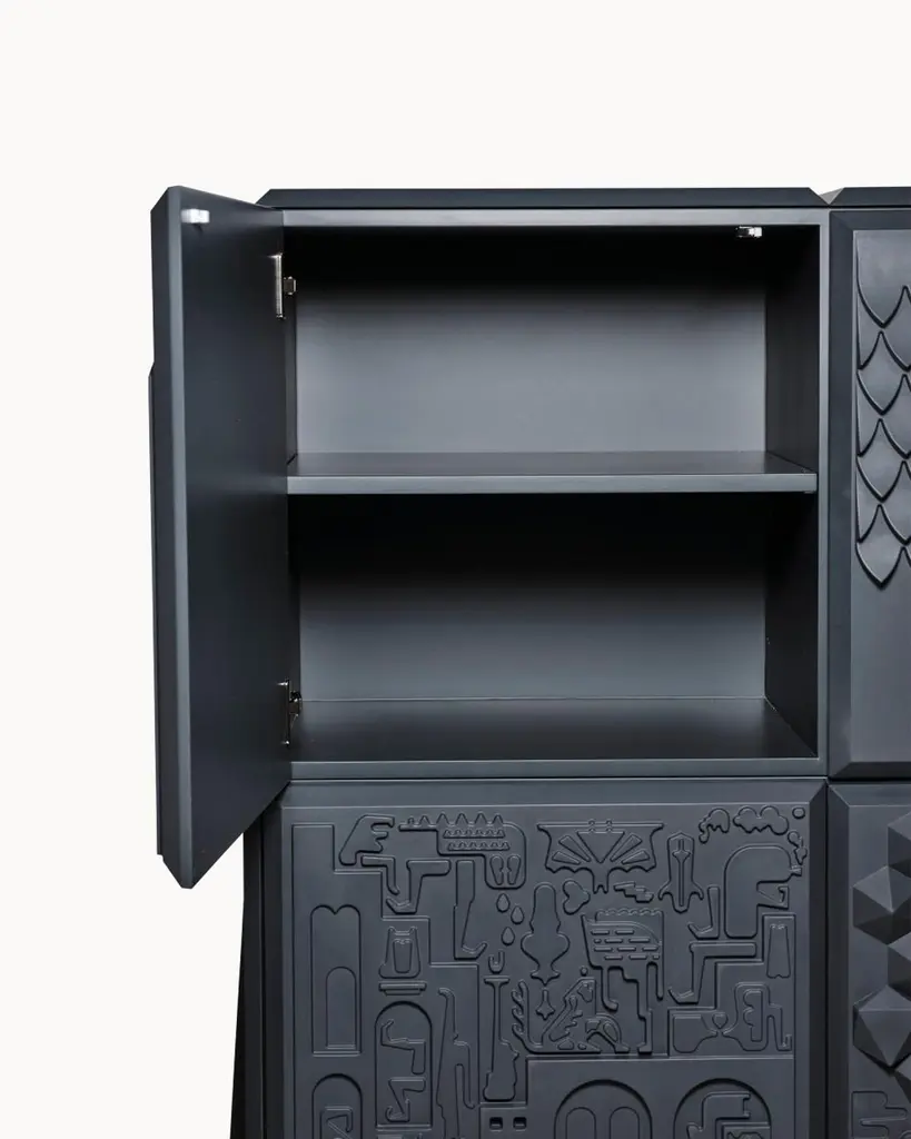 Designed by Antoine+Manuel, the Tout Va Bien cabinet is a textural masterpiece.Antoine Audiau and Manuel Warosz are Parisian graphic designers who developed the Tout Va Bien for BD for the 2009 Salone Del Mobile. It is both tactile experience and cabinet. It is covered by relief patterns from applied arts, hieroglyphic language, fantasy and optimism. The cabinet is modular and fits into various spaces in different configurations while sitting on four different leg styles.It is fantasy in furniture.customizable size, please inquire with us