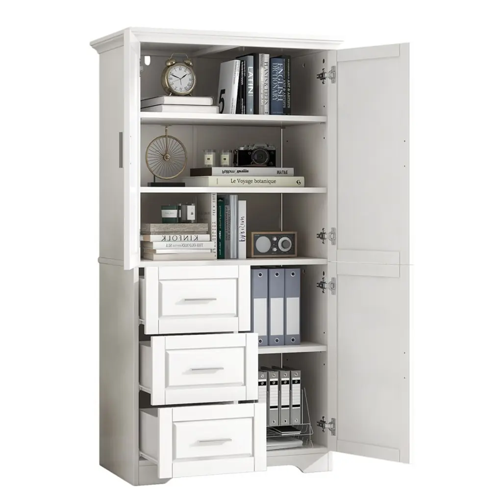 Tramull White Tall & Wide Storage Cabinet With Doors & 3 Drawers, Multi-use Organizer For Bathroom, Office, Kitchen