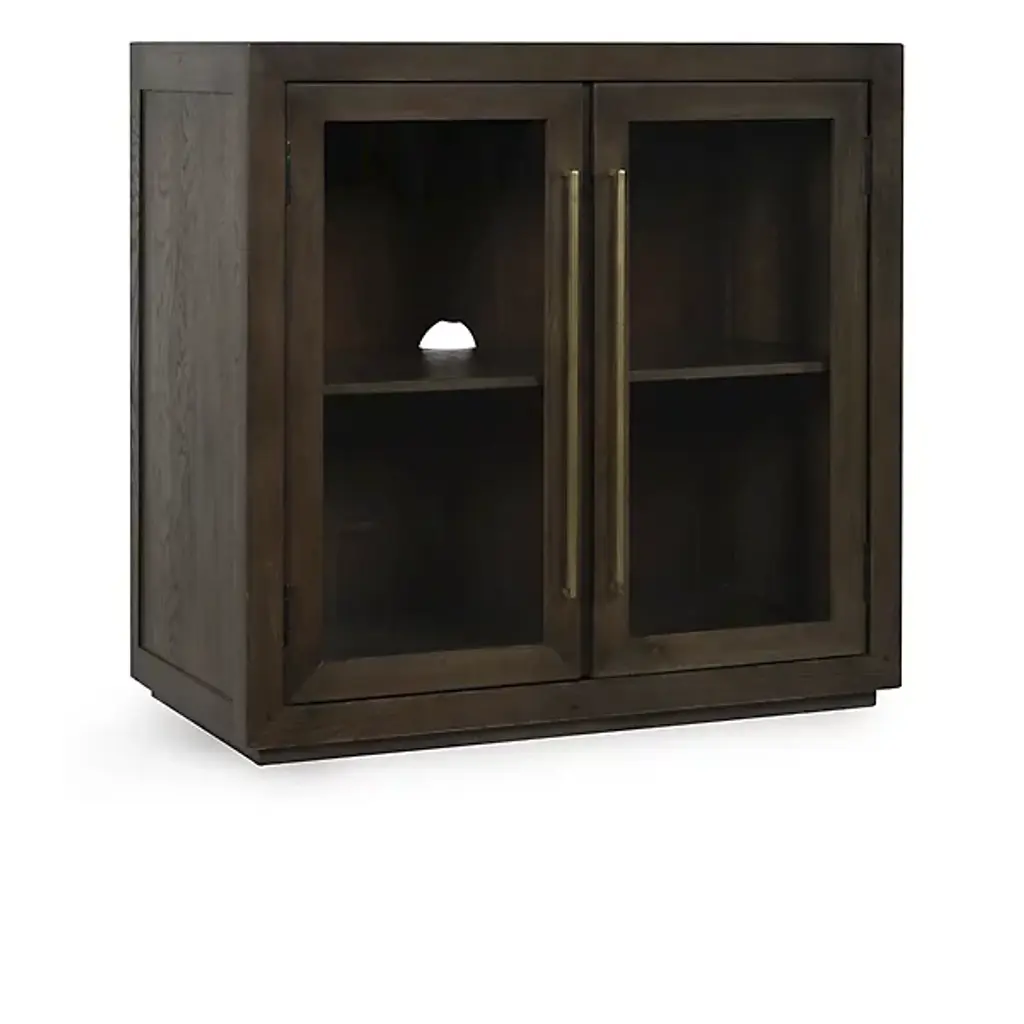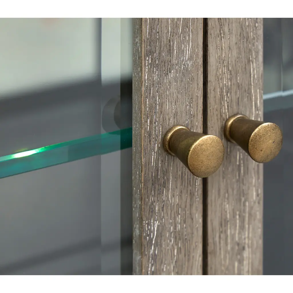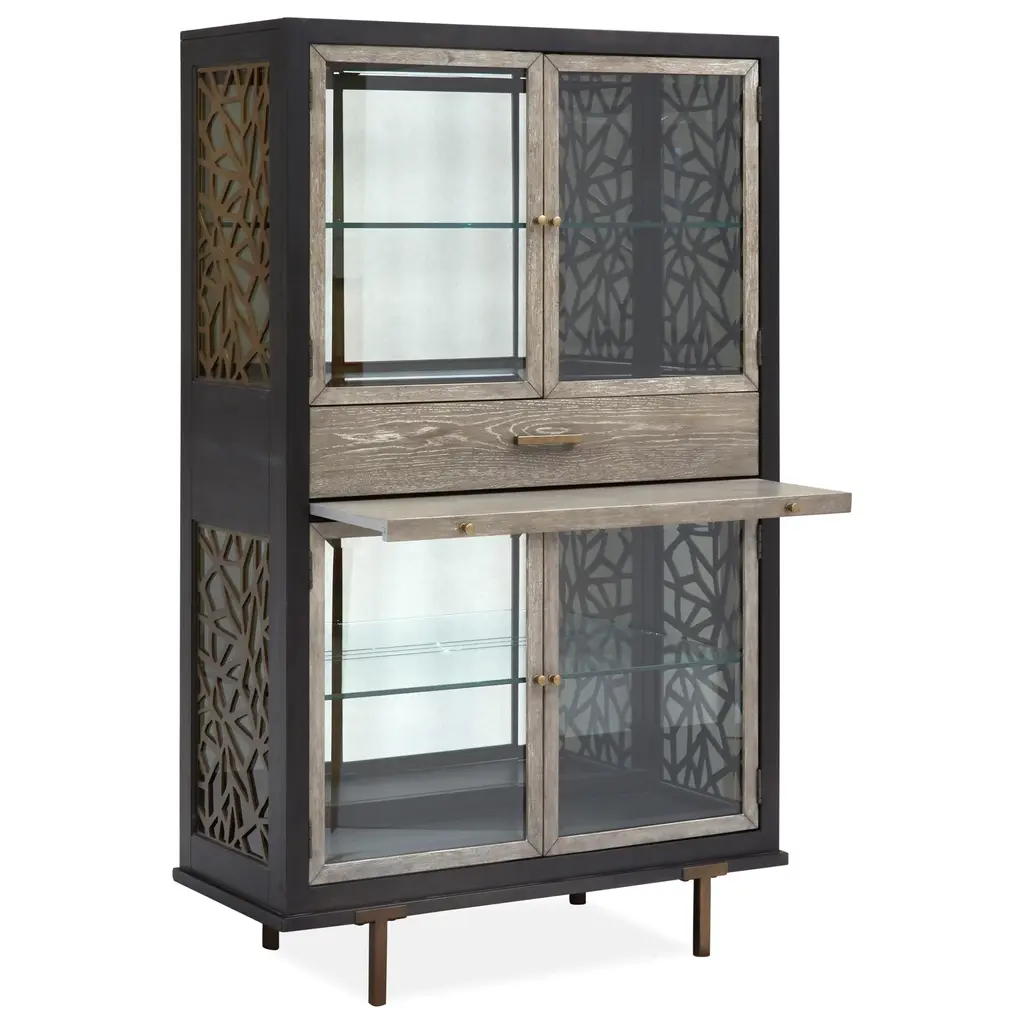 From the weathered two-tone wood finish to the abstract gold accents, this piece is sure to garner praise from all. Outfitted with both open and concealed storage options, this cabinet is perfect for showcasing your finest china while also keeping flatware and napkins neatly stocked away. Adding to the functionality is a pull-out shelf perfect for serving your favorite hors d'oeuvres for a family holiday or gathering with your friends. No matter the event, this cabinet is sure to not only meet but exceed your needs and expectations.