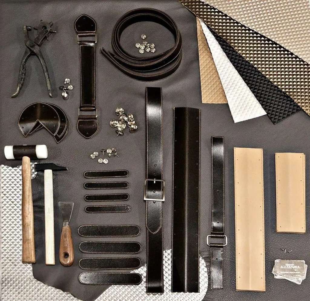 Traveler Double Bath Cabinet, Hand Engraved Leather
