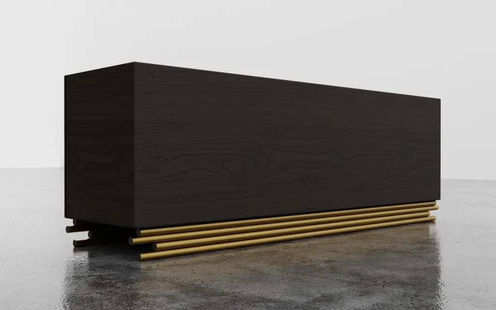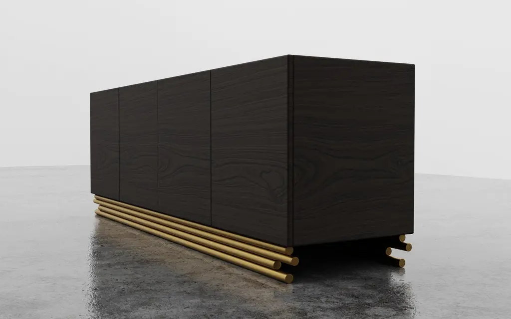 Trestles Credenza - Modern Ebony Walnut Cabinet With Metallic Lacquer Metal Base