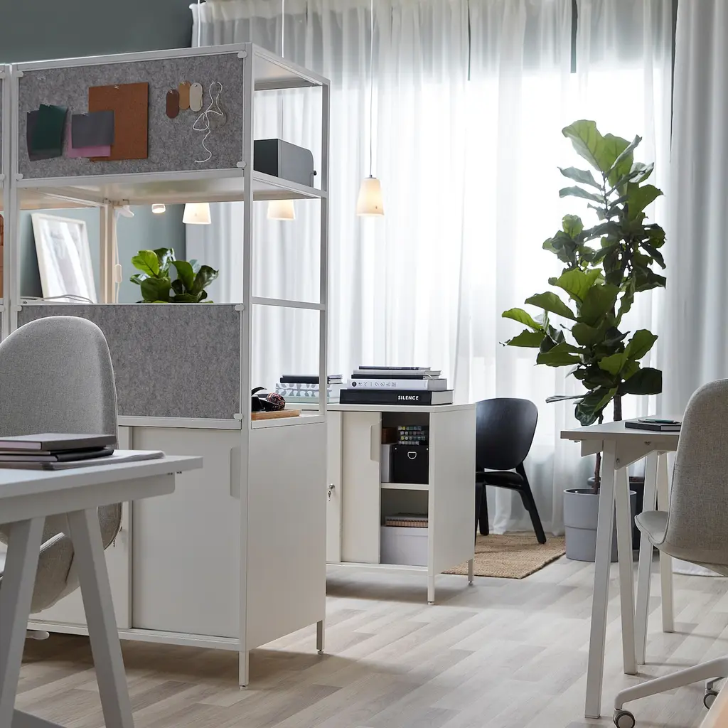 TROTTEN Cab w sliding doors/noticeboard - white 31 1/2x70 7/8 ". 10-year Warranty. Read about the terms in the warranty brochure. The notice board can be mounted to the front or back of TROTTEN double-sided cabinet, so you can decide which side of the shelves should still be accessible.
