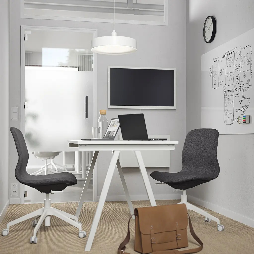 TROTTEN Desk - white 47 1/4x27 1/2 ". 10-year Warranty. Read about the terms in the warranty brochure. The neat and small TROTTEN desk is ideal to use in tight workspaces at home or at the office. Combine TROTTEN desk with FLINTAN office chair for a perfect match.