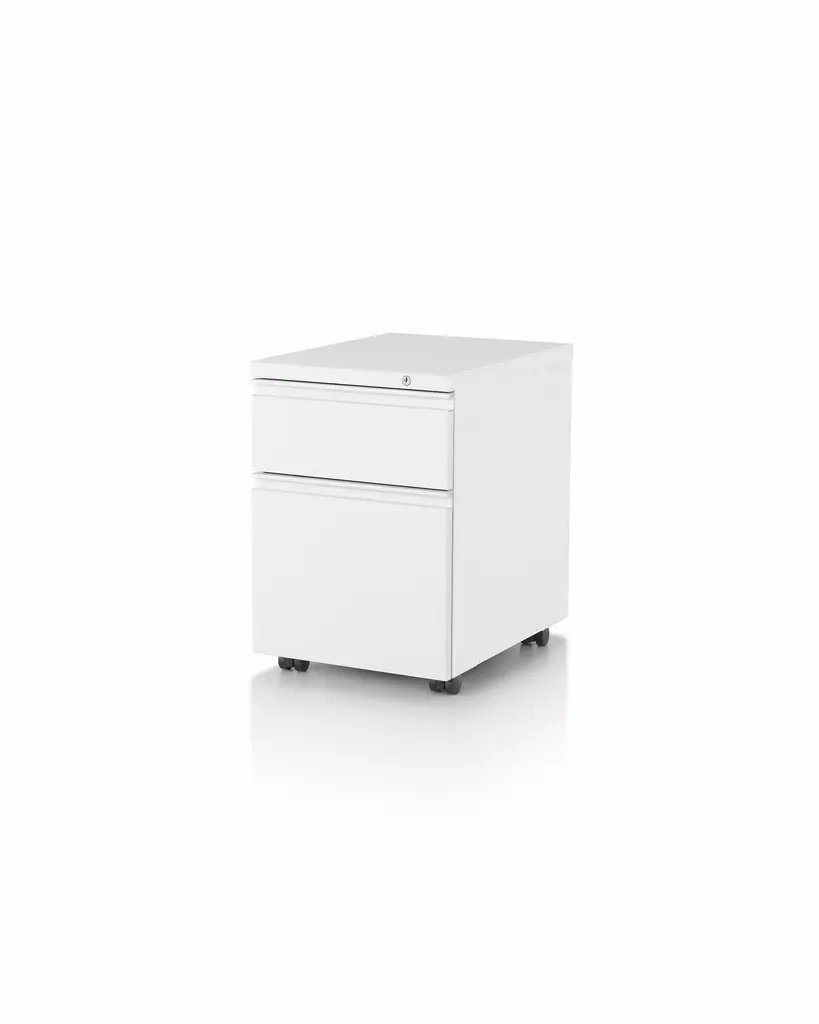 With a streamlined form that navigates tight spaces, the Tu W-Pull Freestanding Pedestal is a highly efficient — and effective — modern filing storage solution. It features two 20-inch-deep drawers that keep files and tools nearby. Fashioned from steel, this office storage filing cabinet also includes a lock to ensure private information remains so. This unit's floor glides protect surfaces from scuffs, while its durable coatings will keep its mechanisms smoothly working for years.