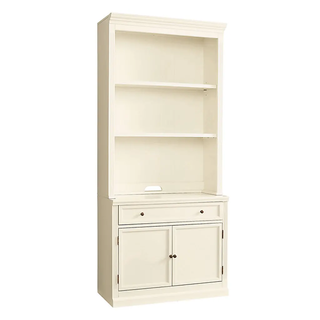 Our modular Tuscan home office furniture blends modern versatility with the classic looks of a custom built-in. Each piece in the collection works with every other, so you can design a workstation or storage solution to fit your space and needs perfectly. The Tuscan Cabinet & Hutch with Shelves offers the perfect combination of display and storage in the family room, home office, bedroom or kitchen. The Hutch features one adjustable shelf and one fixed shelf with cable management below to keep everything neat and clutter-free. Paneled interior gives this versatile piece a finely crafted look that blends with virtually any décor. Double cabinet doors conceal one adjustable shelf for stacking and storing. A single drawer above holds office supplies and everyday essentials. Stand multiple Cabinets & Hutches side-by-side to make a custom-length hutch/credenza with as much storage as you need. Flush sides make it seamless and easy. Tuscan Cabinet & Hutch with Shelves features: