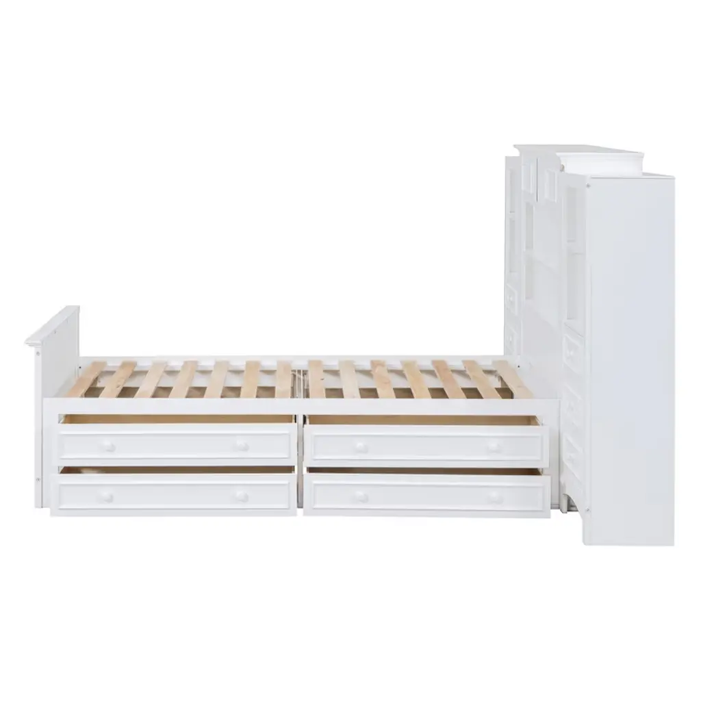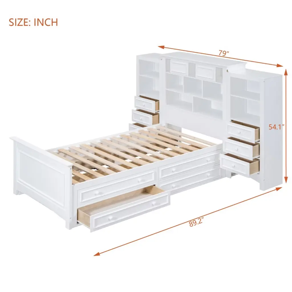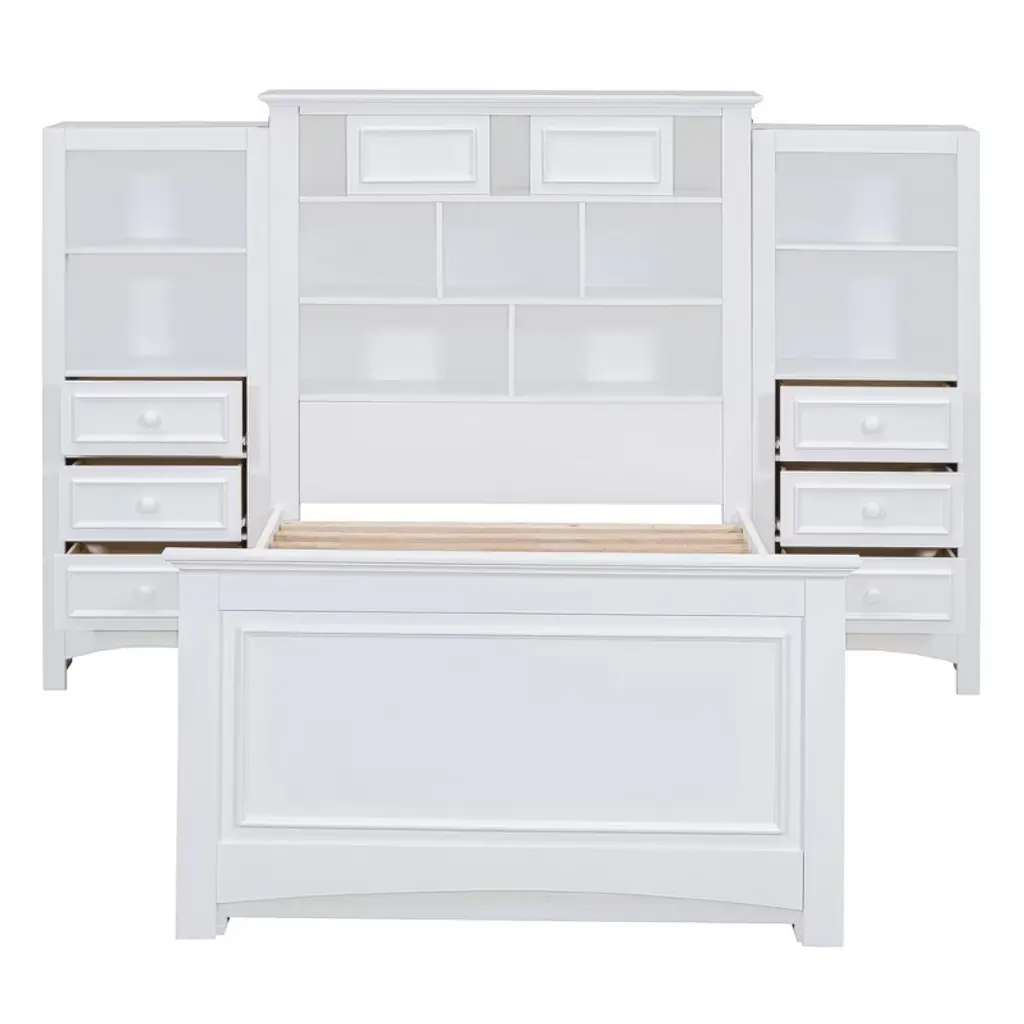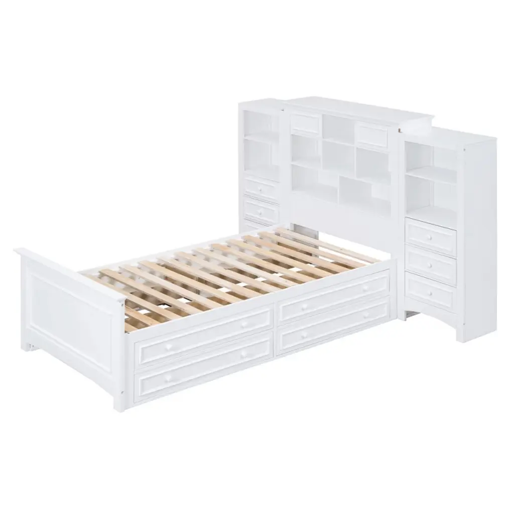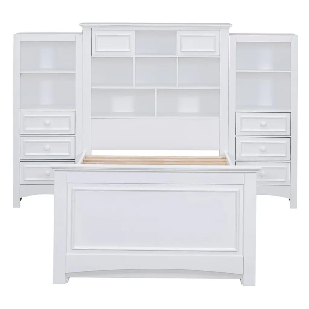 Twin Size Wood Platformbed With Vertical All-in-one Cabinet And 4 Drawers On Each Side White