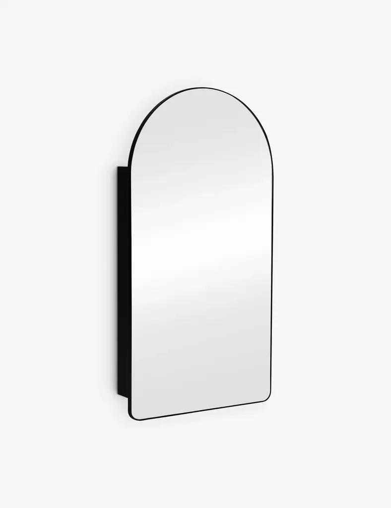 A gentle, fluid curve defines the Aria, creating an element of refined sophistication that will transform your bathroom. Designed to be recessed into the wall, the Aria medicine cabinet features tiered shelving that offers an abundance of concealed storage, making your bathroom feel like the ultimate sanctuary.