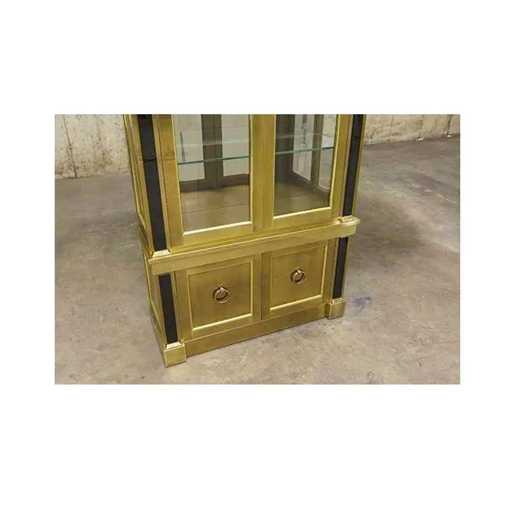 Two Neoclassical Brass Vitrine Cabinets By Mastercraft