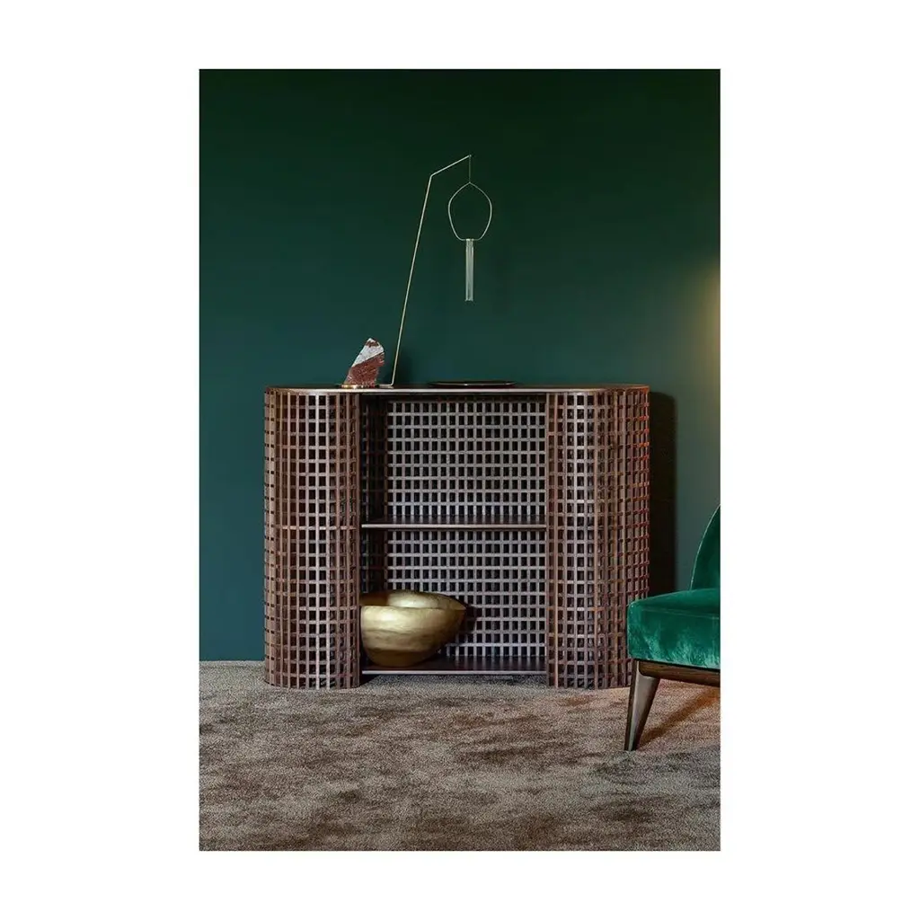 Unique Brown Handcrafted Walnut Carabottino Drink Cabinet by Cara DavideCarabottino collectionMedulumDimensions: 117 x 38 x H 90cmMaterials: Canaletto walnut Also available: linden wood, European walnutA wooden grating in a two-dimensional form traditionally made with wooden slats, it is considered an accessory element, of relative importance, somewhat like window and door frames, an architectural component that is not perceived as an object in itself – there are no carabottino objects or carabottinos that have become objects.With the Carabottino collection, the intricately grated surface is proposed in a new light as it takes on a cylindrical and freestanding position, moving it away from its traditional placement.Graphic and architectonic, its structure is punctuated by vertical and horizontal intersections, an interplay of solids and voids, subsequent of its construction logic. Light and images are overlapped and filtered through its surface.Design studio based in Milan, is a collaboration between Cara Judd (South Africa) and Davide Gramatica (Italy). Graduating in product design from IED Milan, Cara and Davide started their professional careers in diverse areas ranging from apprenticing with artisans to working with Industrial companies before merging their experience in 2016. They work in the fields of product design, event curation and offer creative consultancy to studios and private clients. Cara and Davide both lecture in the Product Design Department at IED Milan. Passionate about craftsmanship, they also produce their own series of products working together with artisans in Italy and South Africa.MedulumAn ancient river flowing in the green countryside of the Veneto hinterland, between emerged lands and swamps that have now disappeared. Medulum, one of the favourite waterways of the Venetian aristocracy of old, indispensable for reaching their country homes.This is where our work draws its inspiration. We combine the experience of 40 years with innovative solutions, collaborating with architect and designer studios in the search and experimentation of new languages, through the craftsmanship of artisanal productions.Medulum has been designing and making furniture and accessories by searching for and experimenting with new languages, collaborating with architects and designers, with the craftsmanship typical of artisanal productions.