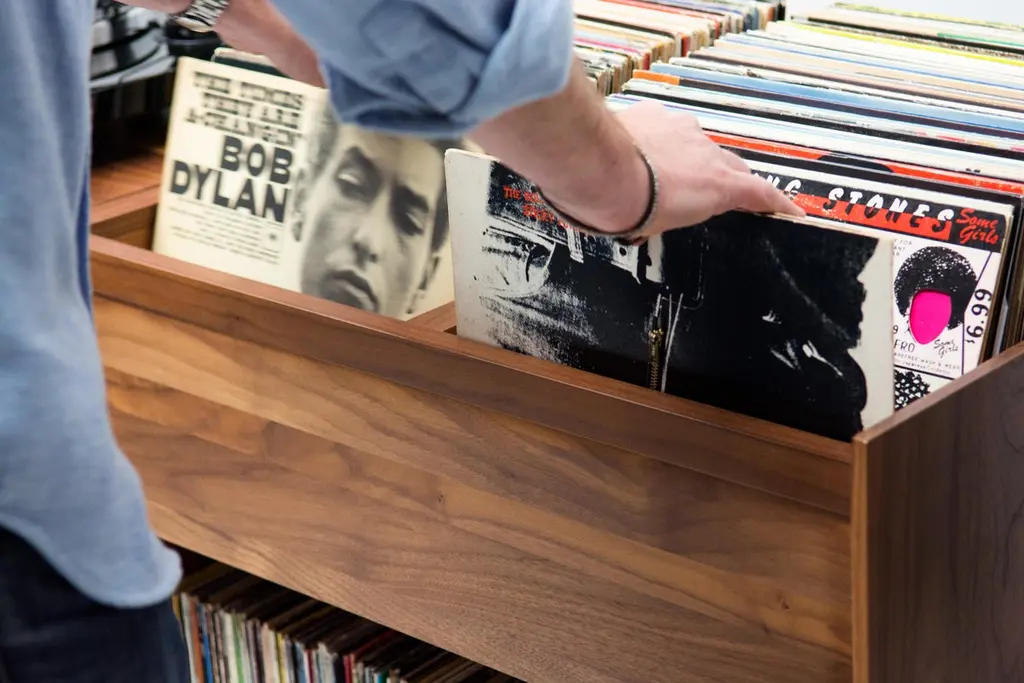 Unison Vinyl Record Storage Cabinet In Solid Natural Walnut