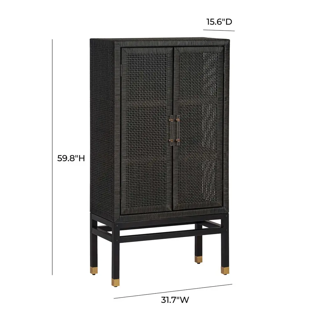 The Valentino Cabinet is the epitome of relaxed California-cool energy. This piece offers great storage and style with its high-quality wrapped rattan design, brass-capped legs and lucite hardware. Its natural, earthy look complements a wide variety of decor styles, the rattan also adds a touch of warmth and texture to any space.