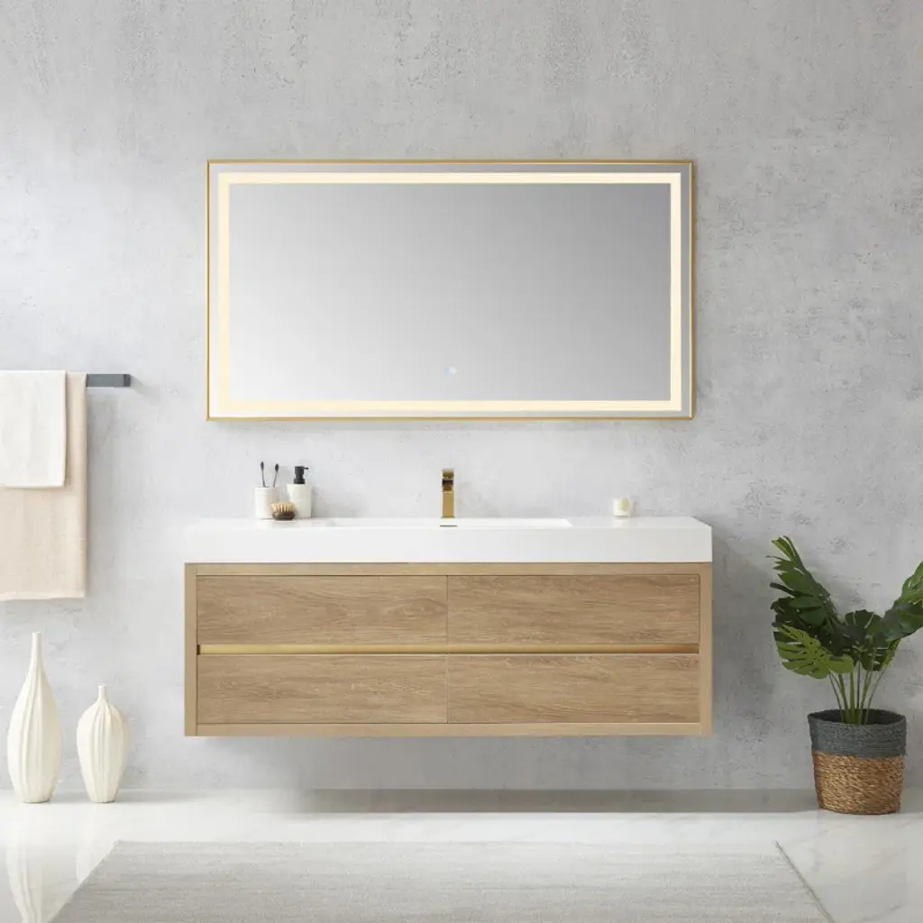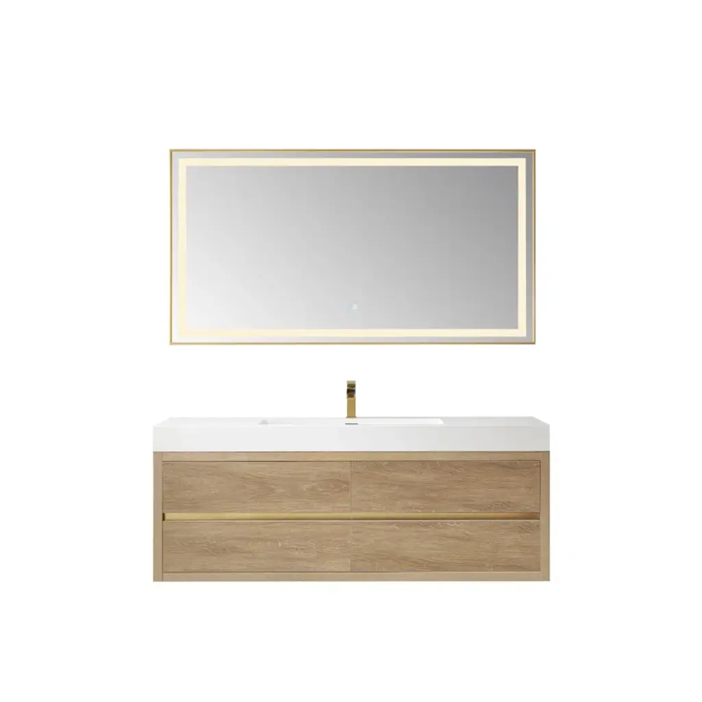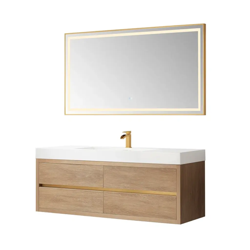 Simple yet elegant, the Brecklin series vanity by Wade Logan® will instantly transform your smaller powder room. It’s crafted from solid, sturdy materials to ensure years of reliable use. Refined details such as the brushed-gold hardware and soft-close door convey quality and attention to detail. You’ll also love the spacious cabinet storage area, perfect for towels, toiletries, and more. Complete with a mirror, this ensemble is perfect for a residential or commercial space.