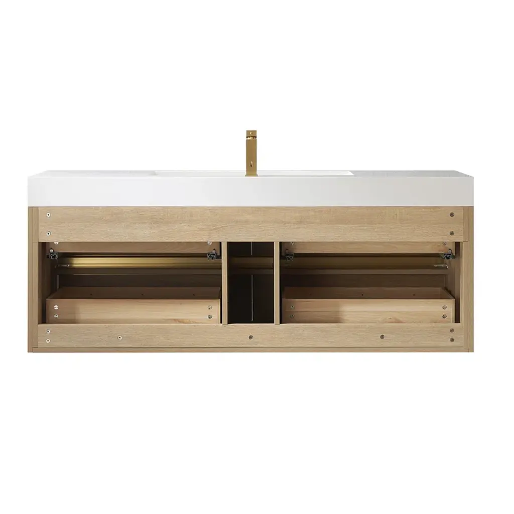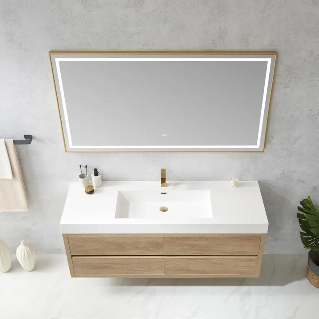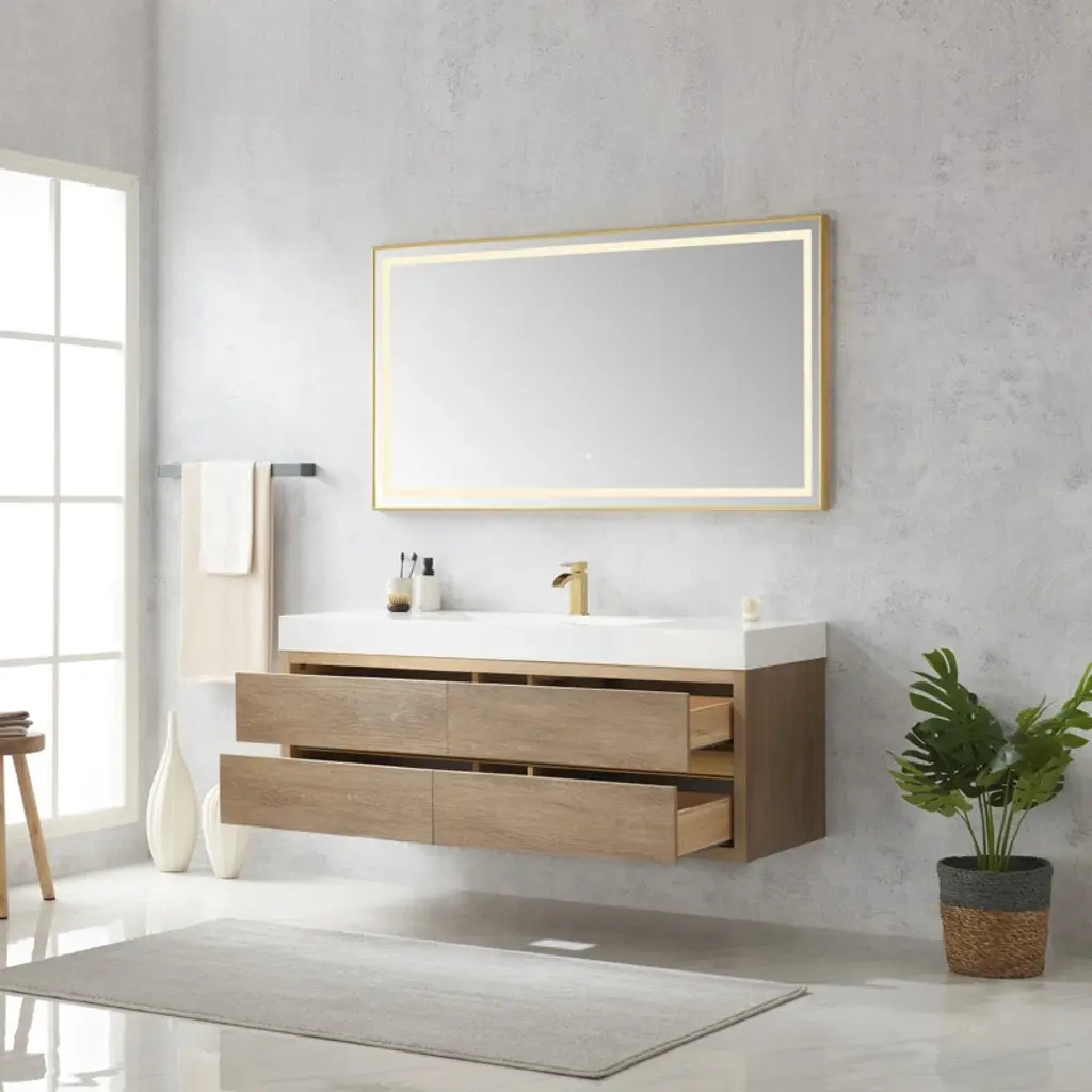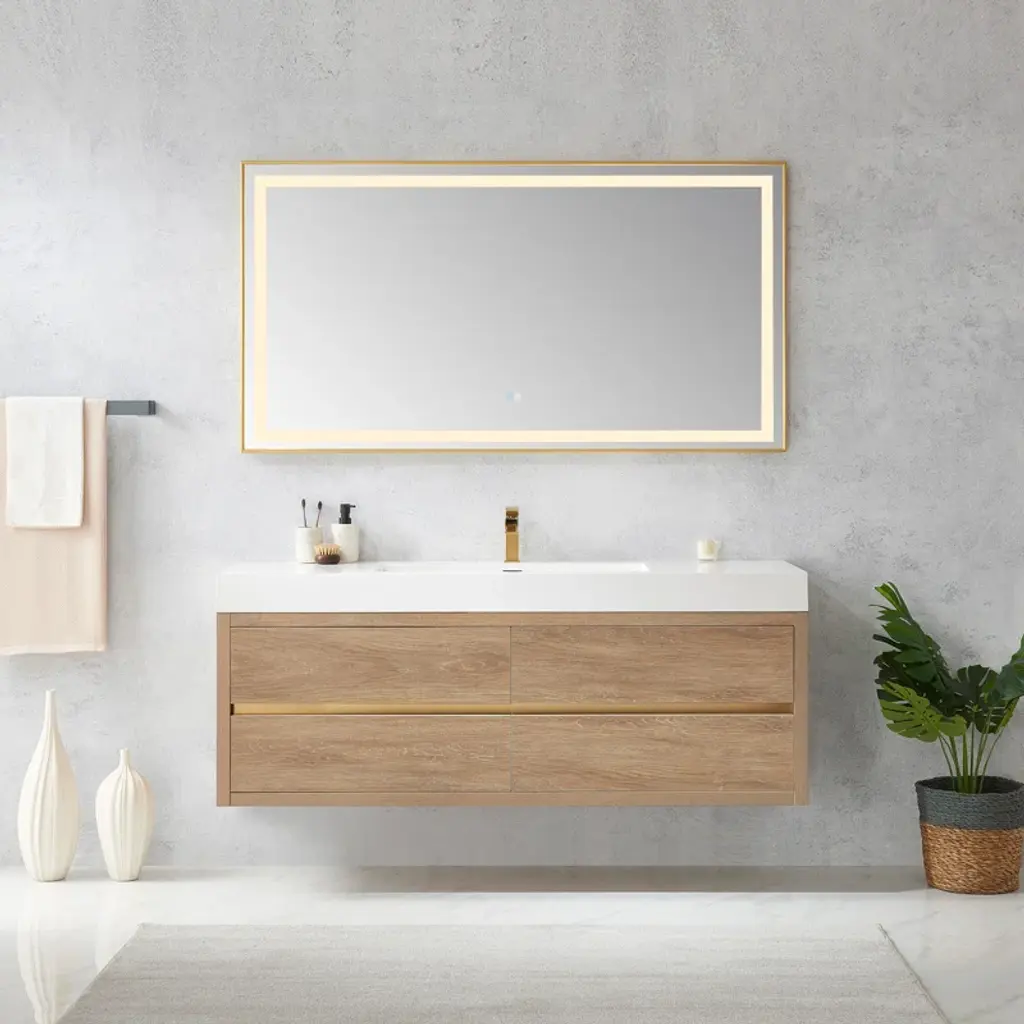 Simple yet elegant, the Brecklin series vanity by Wade Logan® will instantly transform your smaller powder room. It’s crafted from solid, sturdy materials to ensure years of reliable use. Refined details such as the brushed-gold hardware and soft-close door convey quality and attention to detail. You’ll also love the spacious cabinet storage area, perfect for towels, toiletries, and more. Complete with a mirror, this ensemble is perfect for a residential or commercial space.