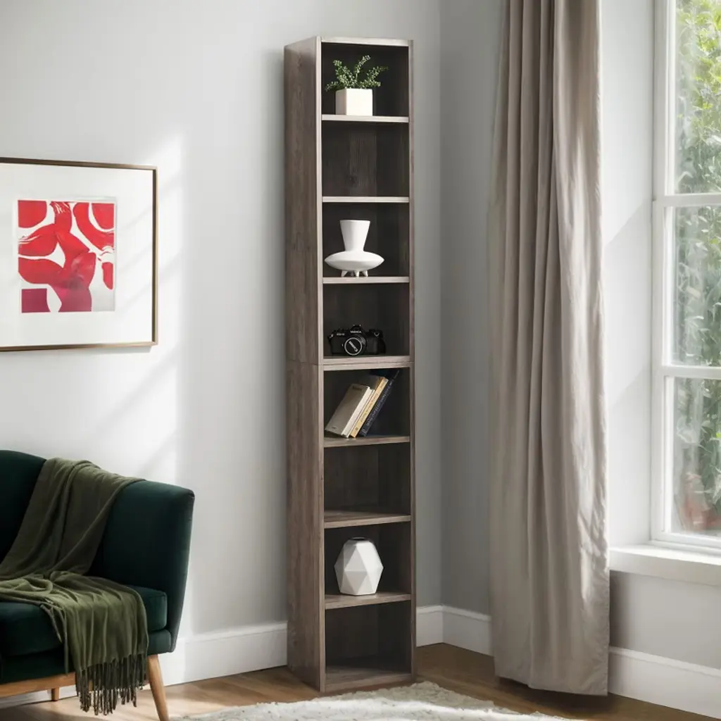 Vanirror Tall Narrow Bookshelf, 8-tier Cube Display Rack, Modern Corner Bookshelf With Storage Space, Storage Cabinet For Home Office