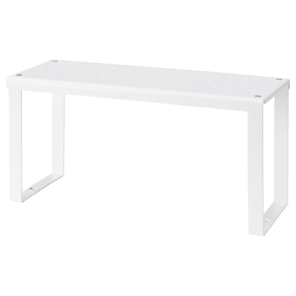 VARIERA Shelf insert - white 12 5/8x5 1/8x6 1/4 ". Place on a shelf to get more storage space for glasses, bowls and spice jars. Makes the contents of the cabinet easy to view and access. You can connect two or more VARIERA shelf inserts together using the included screws.