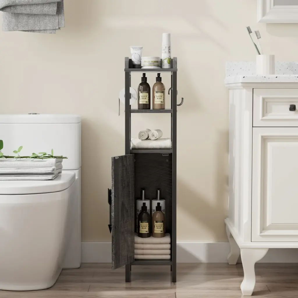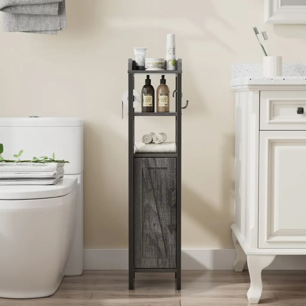 Vecelo Bathroom Storage Cabinet Open Shelves Bathroom Organizer Rack With Toilet Paper Holder And Door Gray
