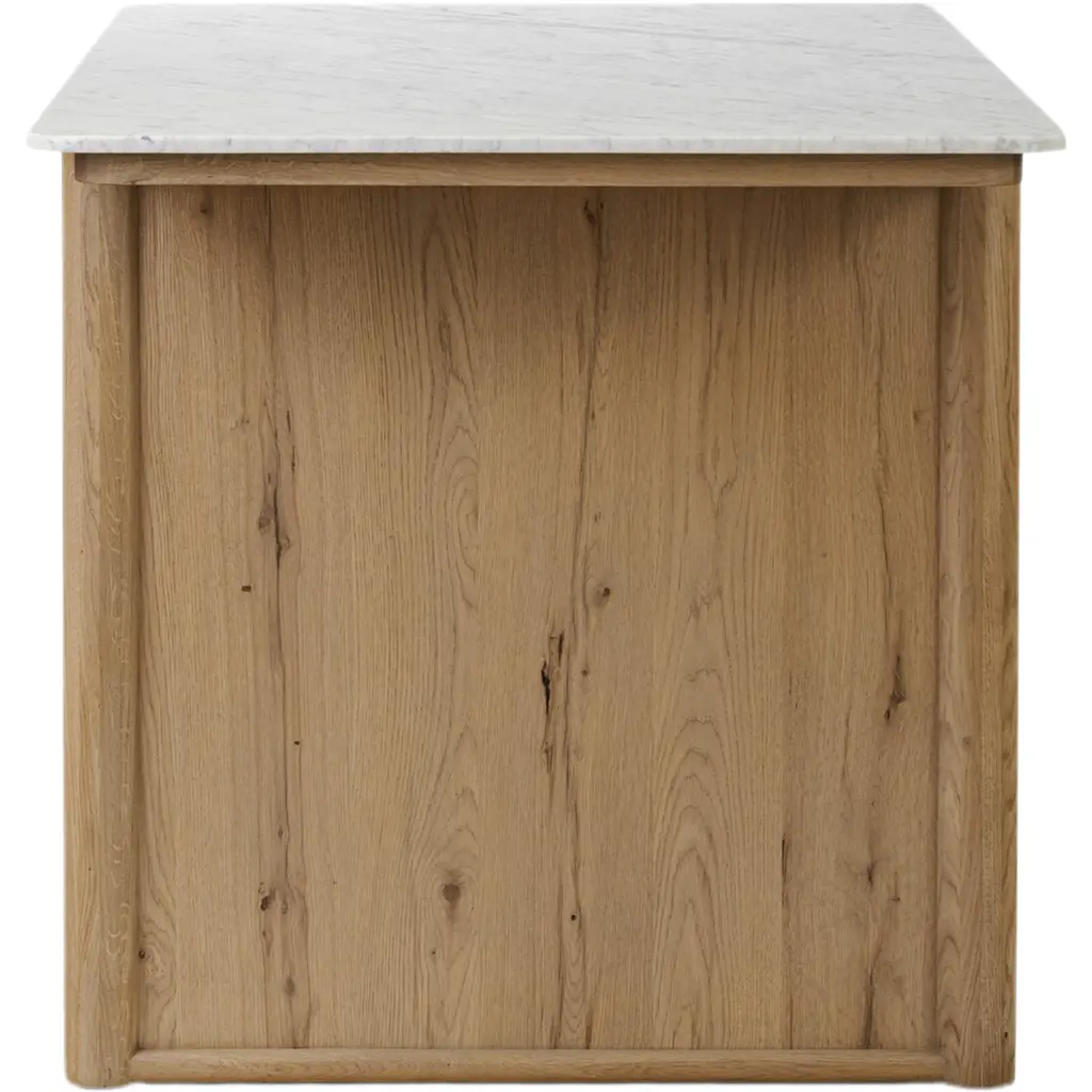 Velastra Kitchen Island, White Carrara Marble/aged Natural Oak