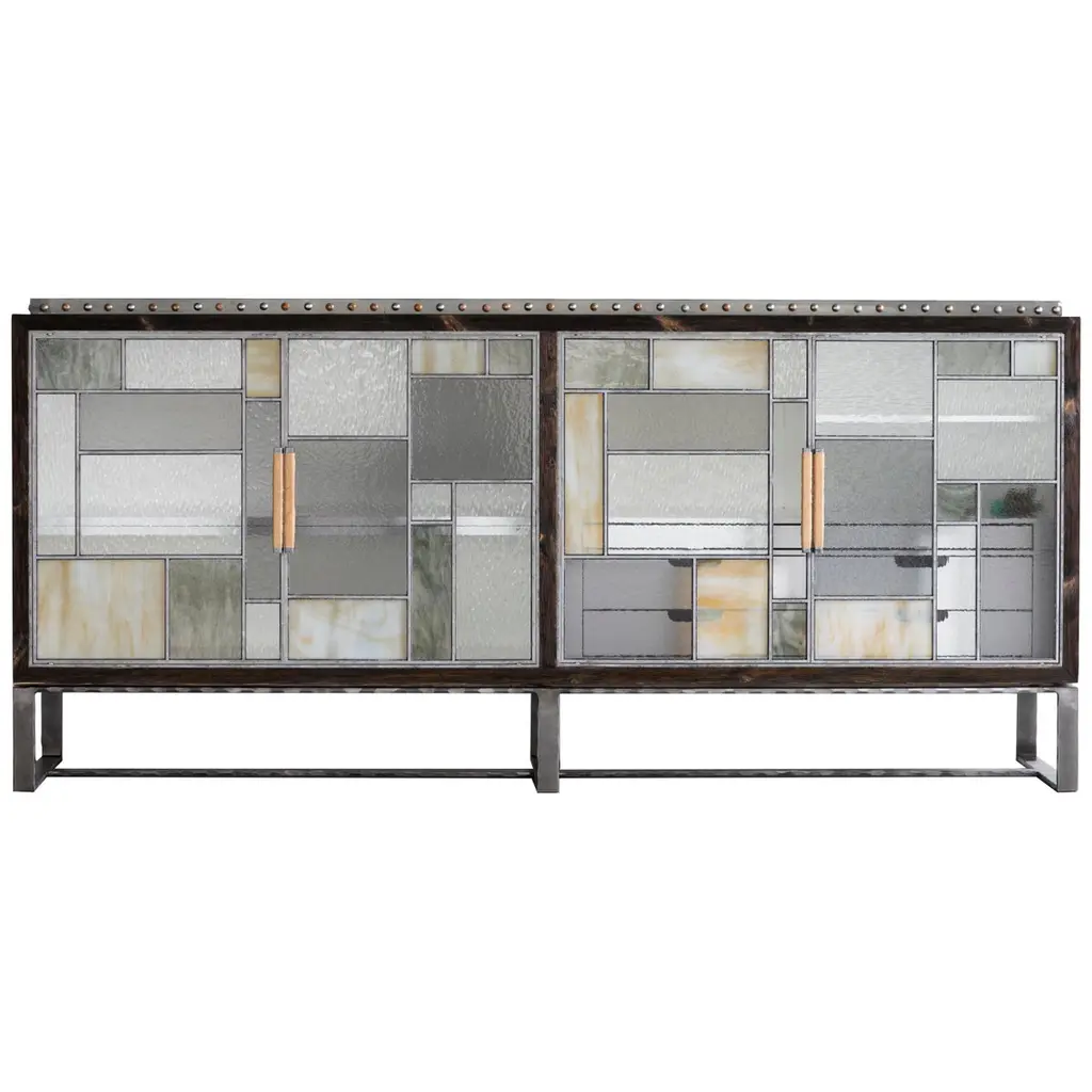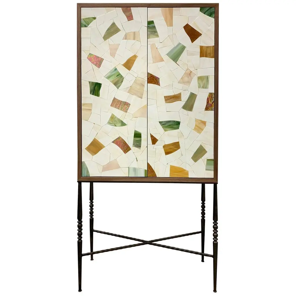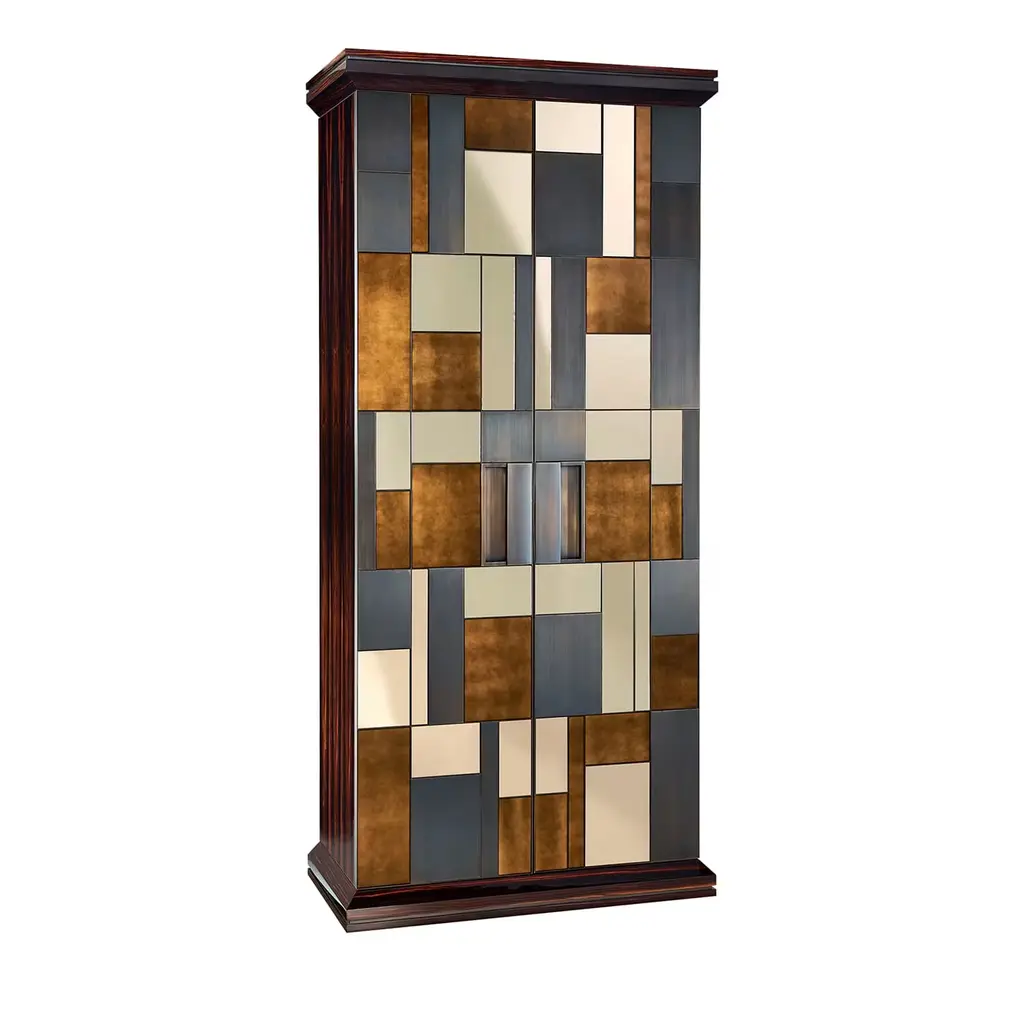 Sicis was born from an intuition: to recover the artistic mosaic from the limbo of history, bringing it to the present age. A cabinet in layered wood panel, with top, size and base in lacquered-polished ebony. Internal parts are in lacquered orange, drawers in bronze, silver mirror and border in bronzed brass. Central doors sre decorated with Colibrì mosaic.