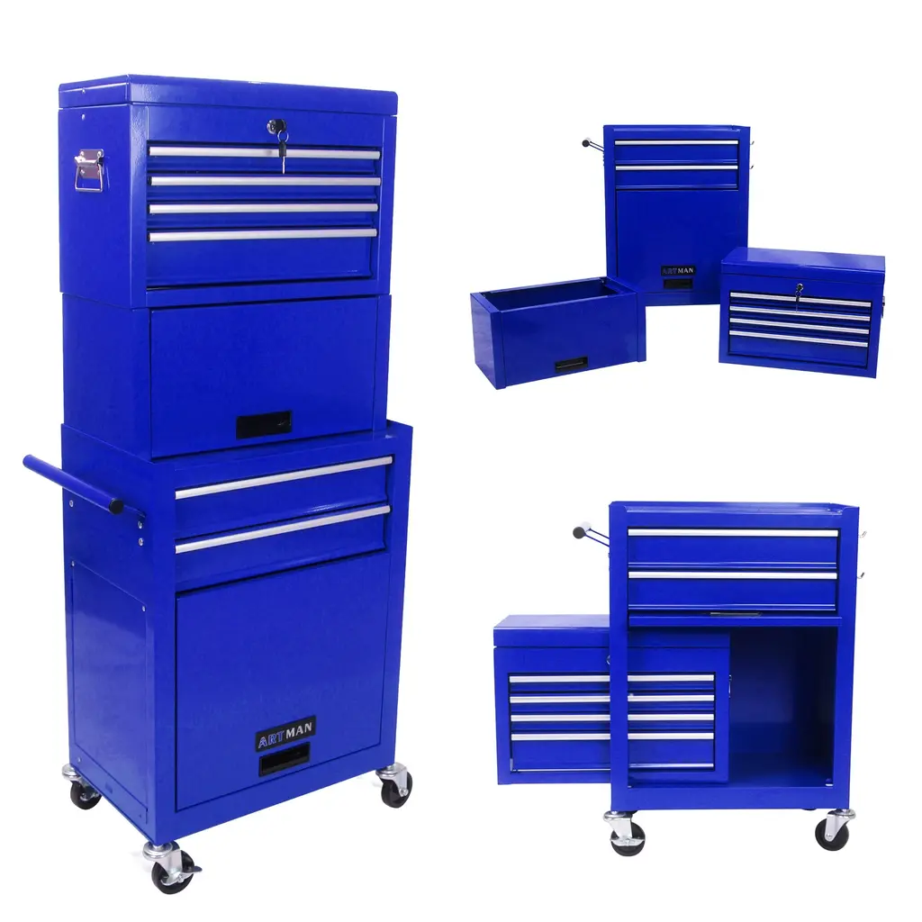 Versatile Lockable Rolling Tool Cabinet With Detachable Compartments For Workshop - Blue