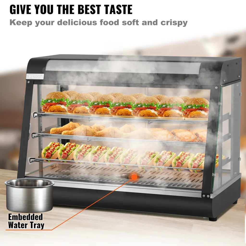 Vevor Commercial Food Warmer Display Countertop Pizza Hot Dog Cabinet Case - 3Tier(35'')