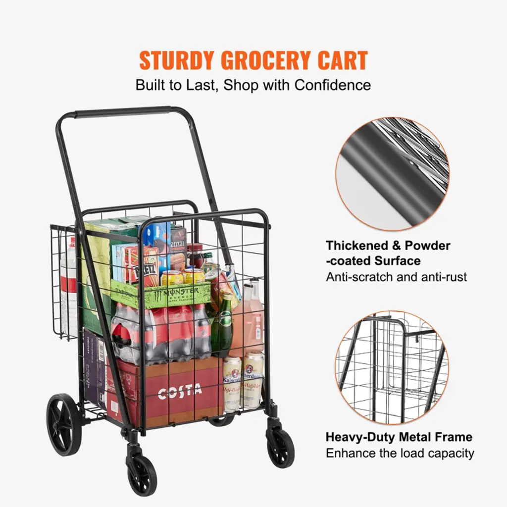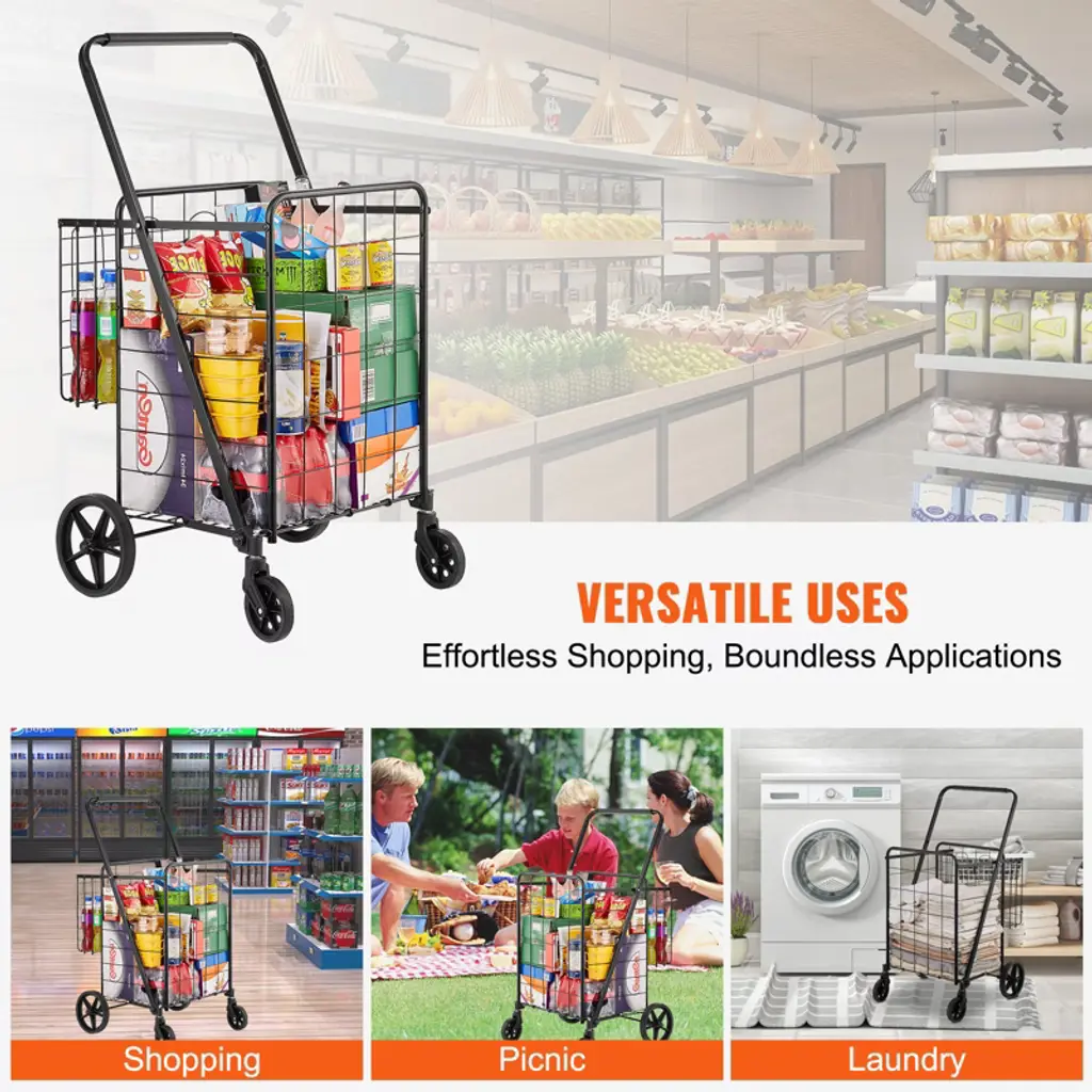 Vevor Folding Shopping Cart, Jumbo Grocery Cart With Double Baskets, 360° Swivel Wheels, Heavy Duty Utility Cart, 110 Lbs Capacity Utility Cart
