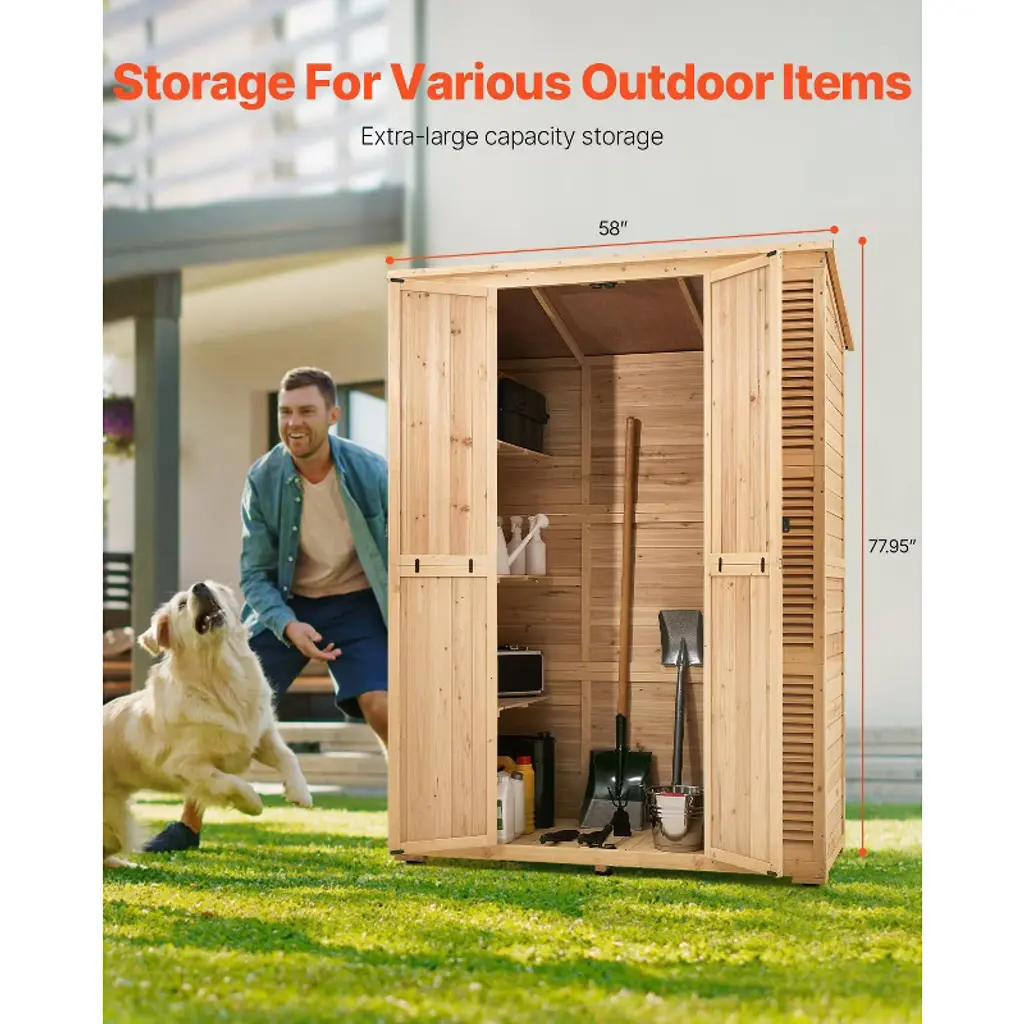 Vevor Outdoor Storage Shed, Oversize Wooden Outside Storage Cabinet With Waterproof Roof And Metal Frame With Shelves & Floor, 58"x78"