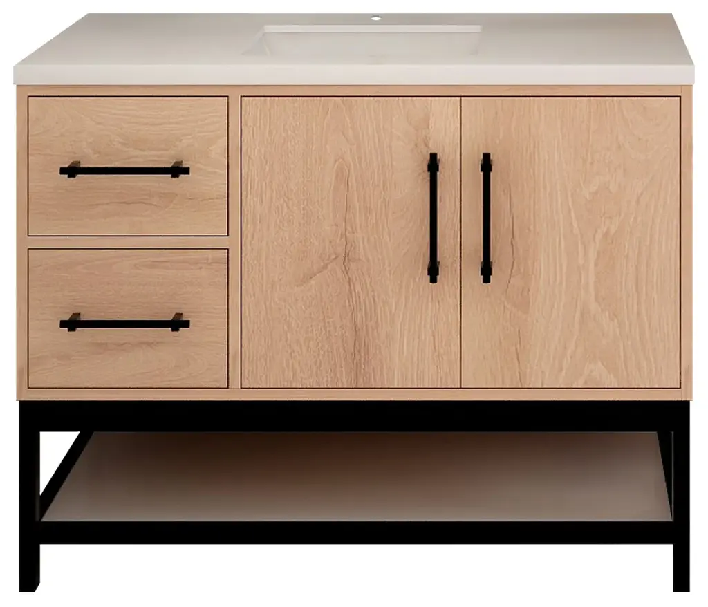 Victoria 42'' Plywood Open Shelf Bath Vanity Left Side, Red Oak