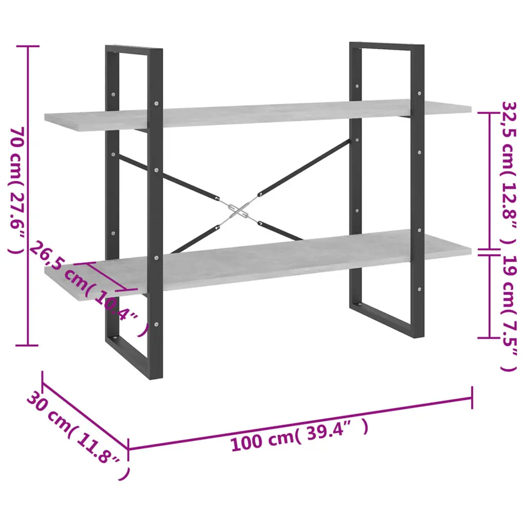 Vidaxl 2-Tier Book Cabinet Concrete Gray 39.4"x11.8"x27.6" Engineered Wood