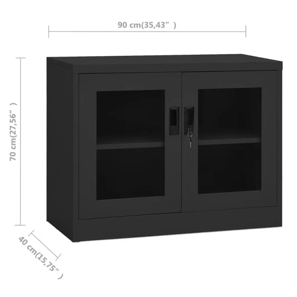 Vidaxl Anthracite Office Cabinet With Tempered Glass Doors - 35.4"x15.7"x27.6" Steel Design, Secure File Storage, Easy Assembly, Scandinavian Style
