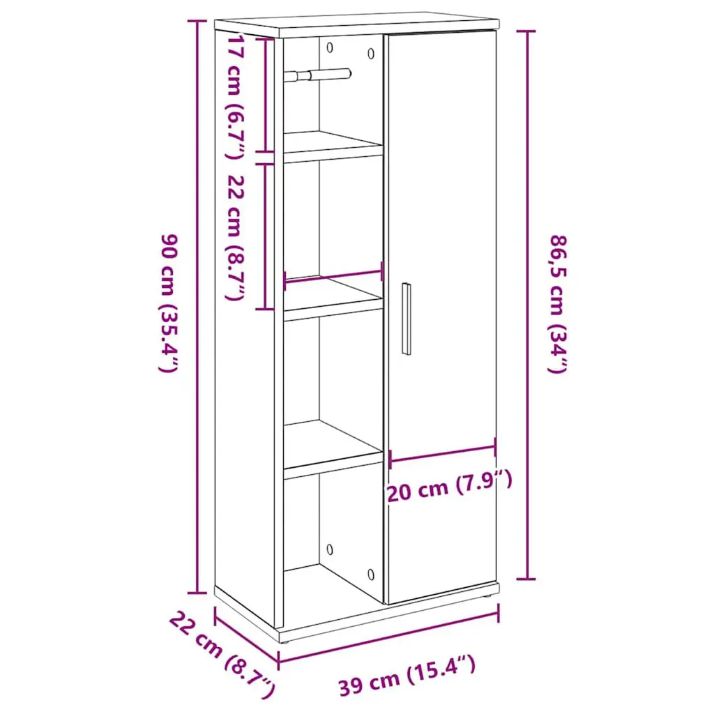 Vidaxl Bathroom Cabinet Grey Sonoma Engineered Wood 15.4x8.7x35.4 In