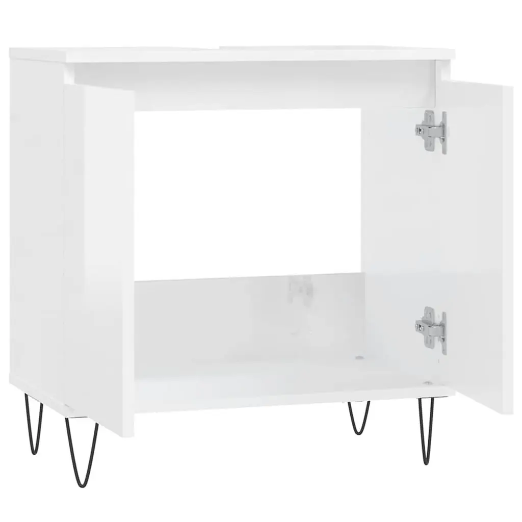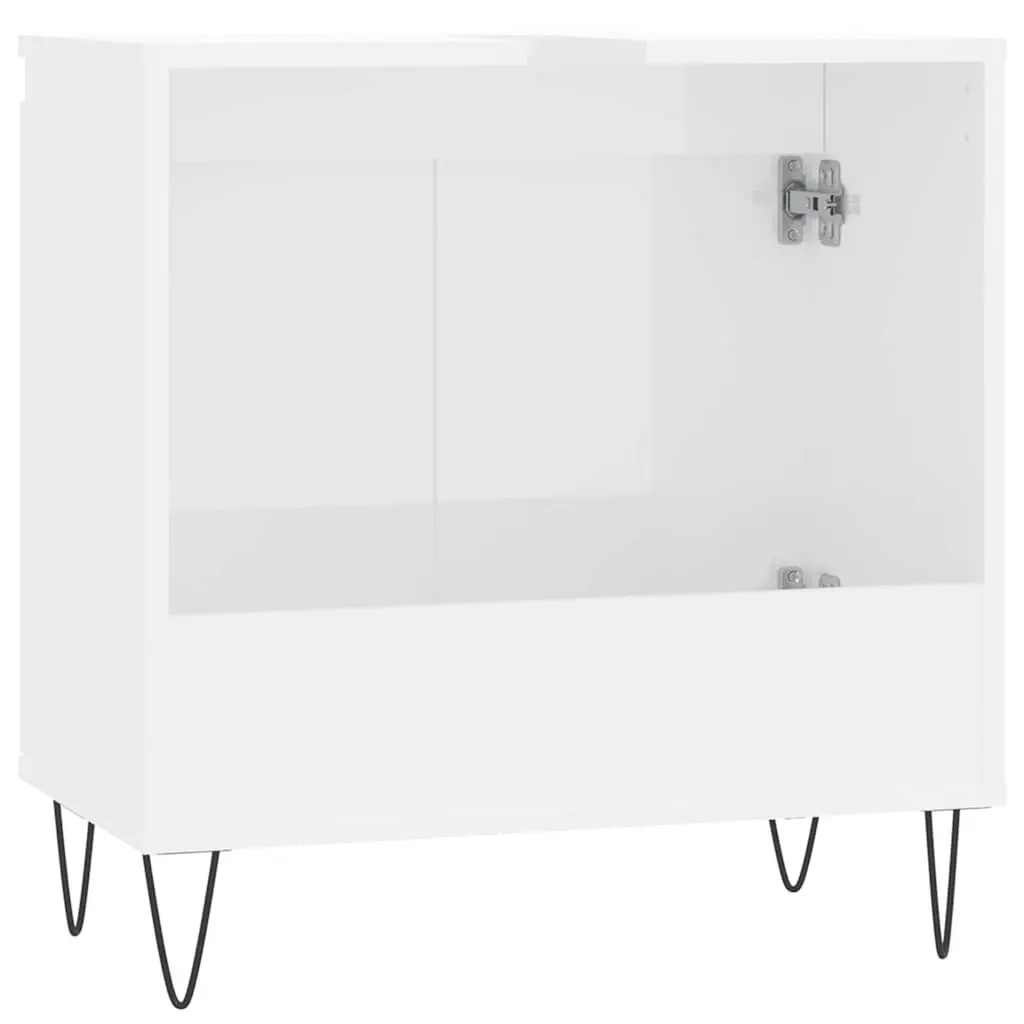 Vidaxl Bathroom Cabinet High Gloss White Engineered Wood, Iron Medium