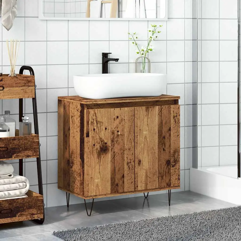 Vidaxl Bathroom Cabinet Old Wood Engineered Wood, Iron Medium
