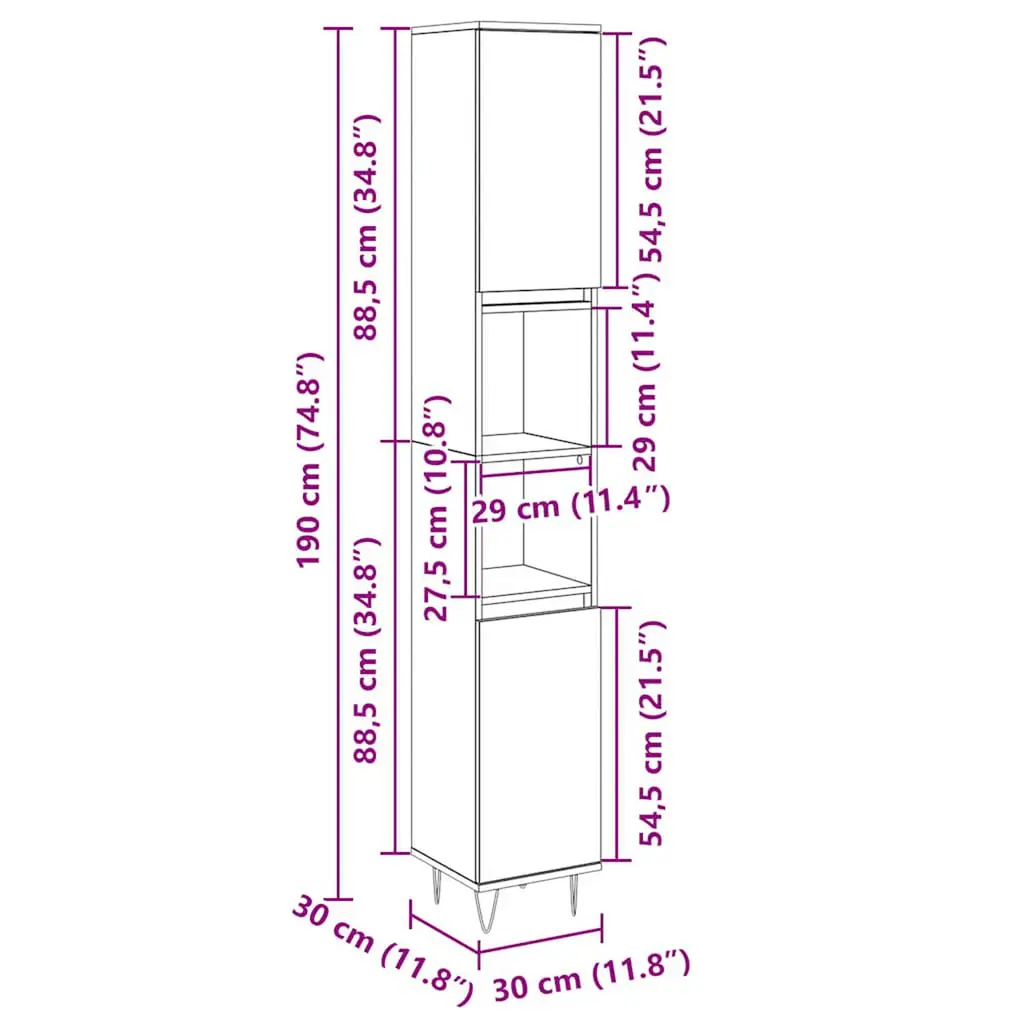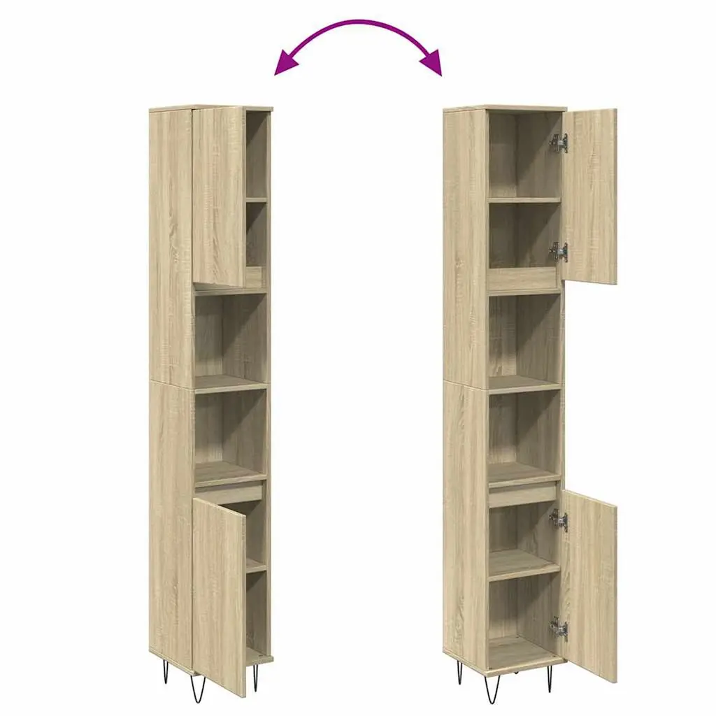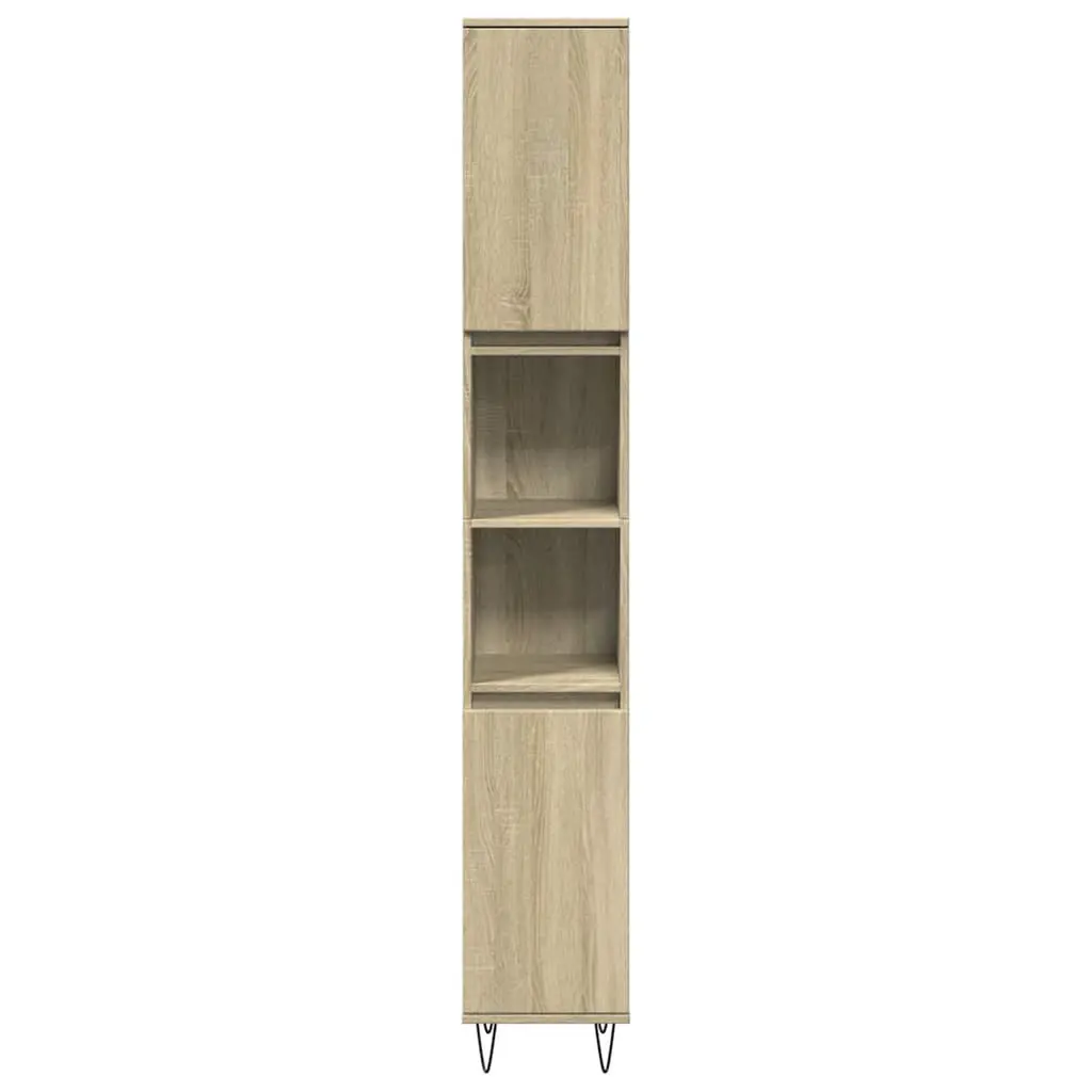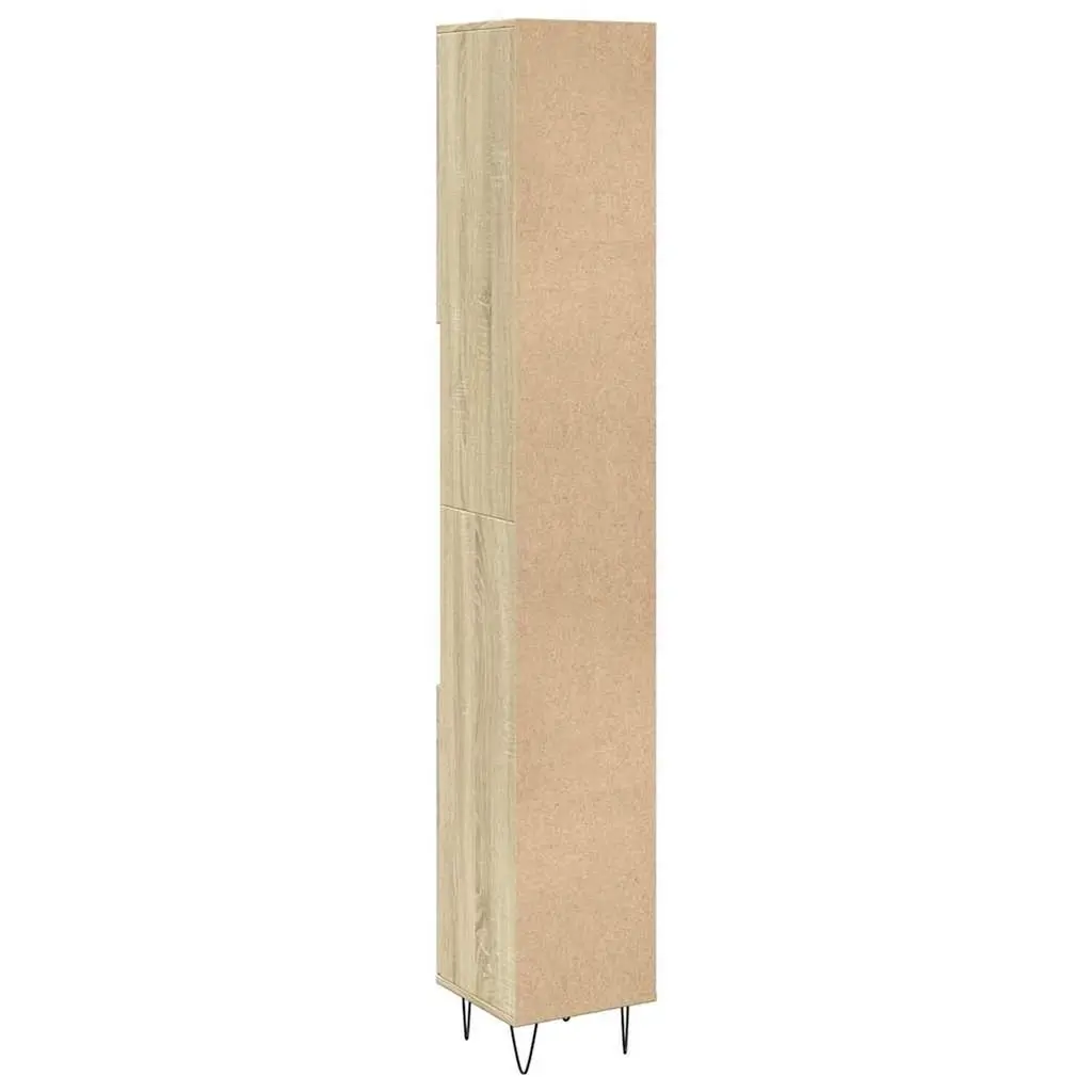 Vidaxl Bathroom Cabinet Sonoma Oak Engineered Wood, Iron Slim And Tall