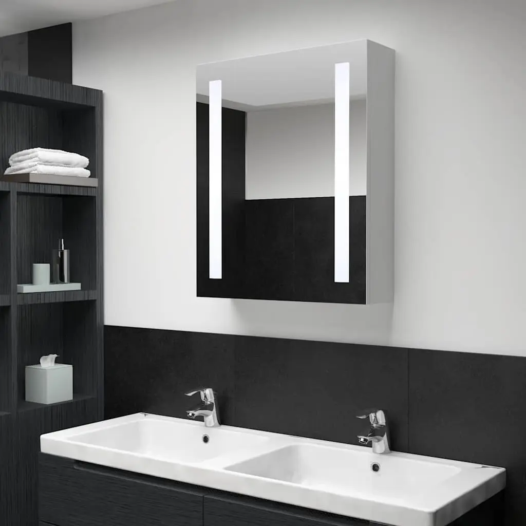 This LED Bathroom Mirror Cabinet is a great combination of practicality and style, perfect for jazzing up any bathroom. At 19.7x5.1x27.6 in, it's in a sleek white and silver finish that not only looks good but also provides vital storage and lighting for all your grooming needs. Integrated Energy-Efficient Lighting: The built-in LED lighting creates a lovely glow, ideal for personal grooming. With a light level around 6000 Kelvin, it gives you excellent visibility, making your daily routine easy and enjoyable. Plus, it's a smart touch to your bathroom look.Ample Storage Solutions: Featuring three spacious MDF shelves, this cabinet is great for keeping toiletries, beauty products, and other essentials organized. It's perfect for anyone wanting to declutter their bathroom while making sure everything's easy to get at and looking good.Contemporary and Stylish: The clean lines and smooth white and silver finish make this mirror cabinet look chic and fit well with various styles. It really suits modern bathrooms, blending right in with other bits and bobs for a polished look.Wall-Mountable Design: This cabinet goes right onto the wall, saving you floor space and giving a smart look. It's especially handy in smaller bathrooms where space is tight, allowing you to make the most of what you've got without giving up on style.Durable Construction: Made from quality MDF and glass, this cabinet stands up well to the humidity and dampness of bathrooms. It's built to last, making it a savvy purchase for homes or commercial spaces.