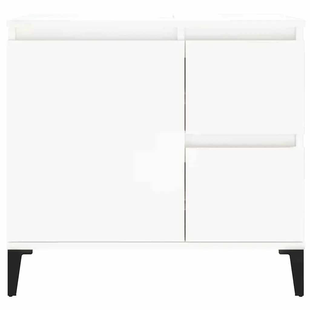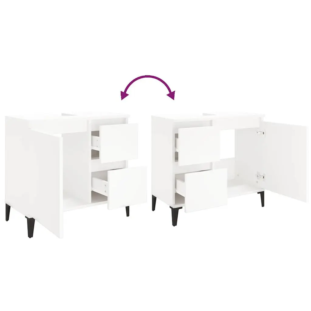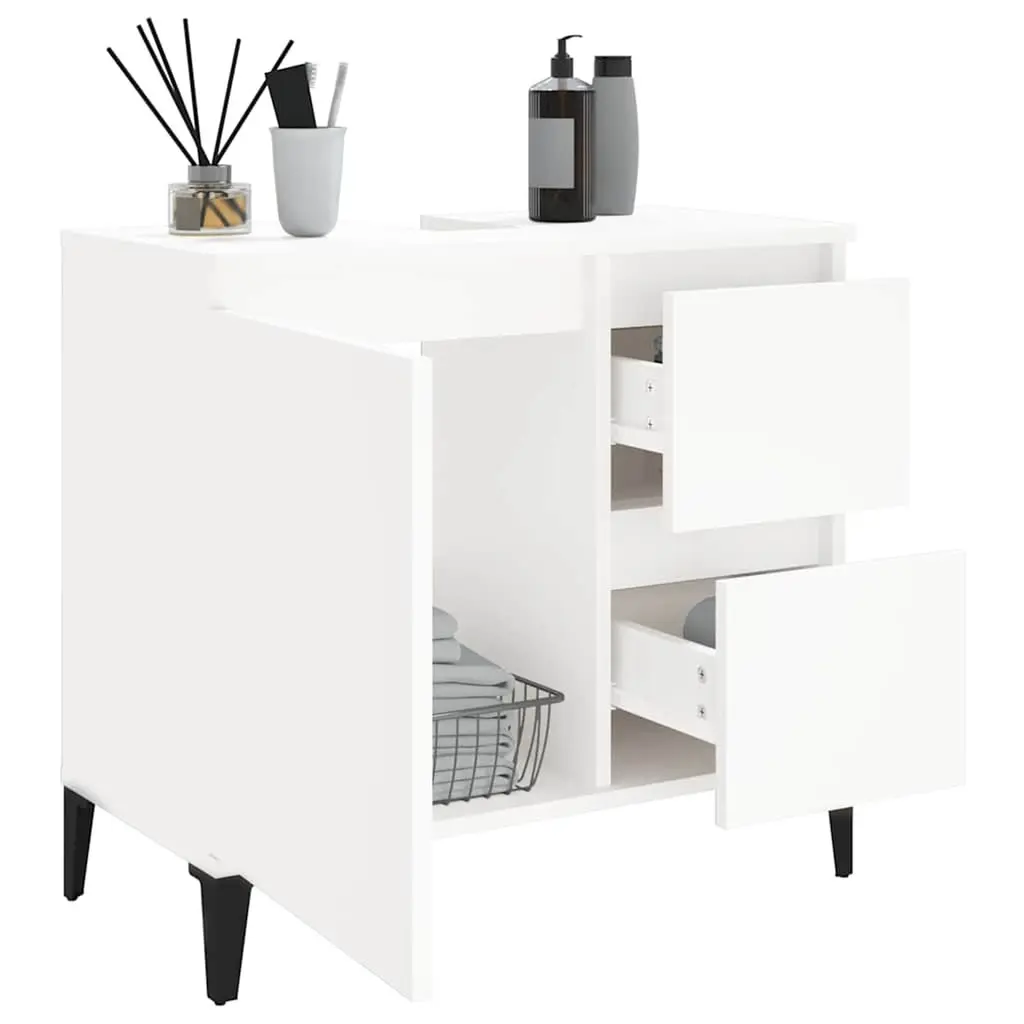 This bathroom cabinet looks awesome with its sleek, industrial vibe and is super functional too. The smooth white finish and strong engineered wood construction not only make your bathroom look fab but also provide loads of storage for all your essentials, helping you keep everything neat and tidy. Ample Storage: The cabinet has a total of 3 compartments, giving you loads of space for all your toiletries, towels, and bathroom essentials, keeping everything neat and easy to grab. Stylish Industrial Design: Clean lines and a minimalist vibe influenced by industrial style, making it a great fit for various looks while adding a modern touch to your bathroom. Durable Material: Made from top-quality engineered wood, this cabinet is tough and resilient, especially in a wet environment like the bathroom, so it can handle daily use. Convenient Soft-Close Drawers: The soft-close feature means the drawers shut quietly, helping create a peaceful bathroom atmosphere. Sleek Finish: The matte finish gives you a modern, non-reflective surface that not only looks classy but also makes cleaning super easy.