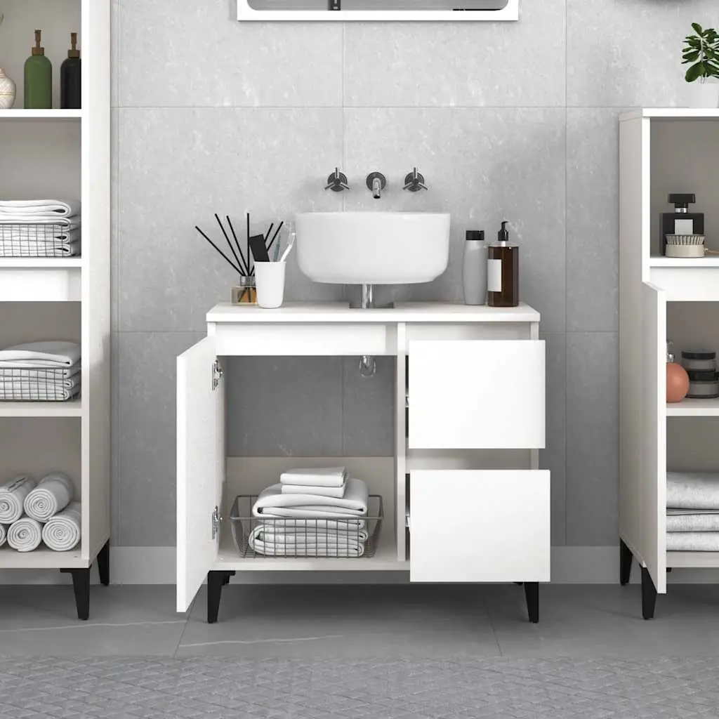 Vidaxl Bathroom Cabinet White Engineered Wood, Metal Medium