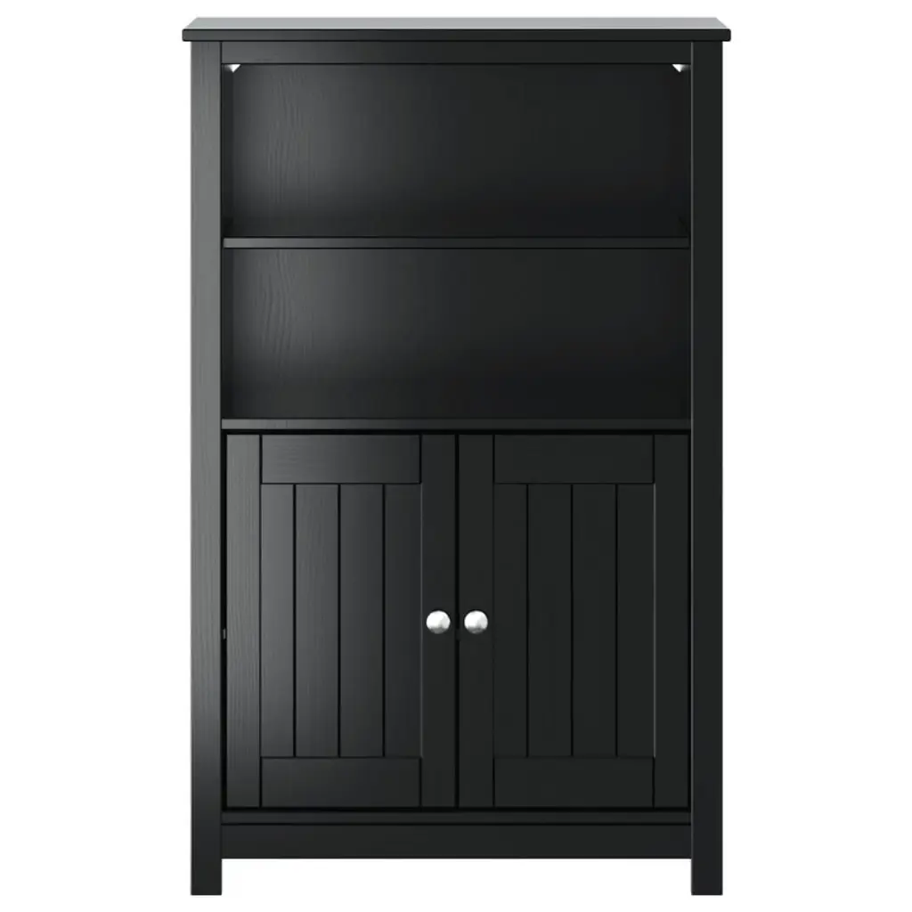 This modern bathroom cabinet combines sleek style with practical storage, making it a great addition to any bathroom. Crafted from solid pine wood and finished in a crisp painted color, it offers a clean, minimalist look that fits seamlessly into various decor styles.Key Features• Durable solid pine wood construction for long-lasting use• Painted finish for a fresh, modern appearance• Tall and narrow design saves floor space while maximizing storage• Wall-mountable to further free up space (mounting hardware not included)Ample Storage Space• Features 4 shelves and 1 or 2 doors (depending on size selected)• Open shelves are perfect for frequently used toiletries• Lower cupboard keeps personal items neatly tucked awayAvailable Options• Sizes: 15.7" x 13.4" x 43.3" and 27.4" x 13.4" x 43.3"• Colors: White and BlackEasy Maintenance• Simple to clean—just wipe with a damp cloth to keep the cabinet looking its bestProduct Dimensions• 15.7 in x 13.4 in x 43.3 in or 27.4 in x 13.4 in x 43.3 in (W x D x H)• Weight: 29.89 lbs or 42.55 lbs (depending on size)This bathroom cabinet is ideal for organizing toiletries, towels, and other essentials, helping you keep your bathroom tidy and stylish. Choose the size and color that best fits your space and needs.