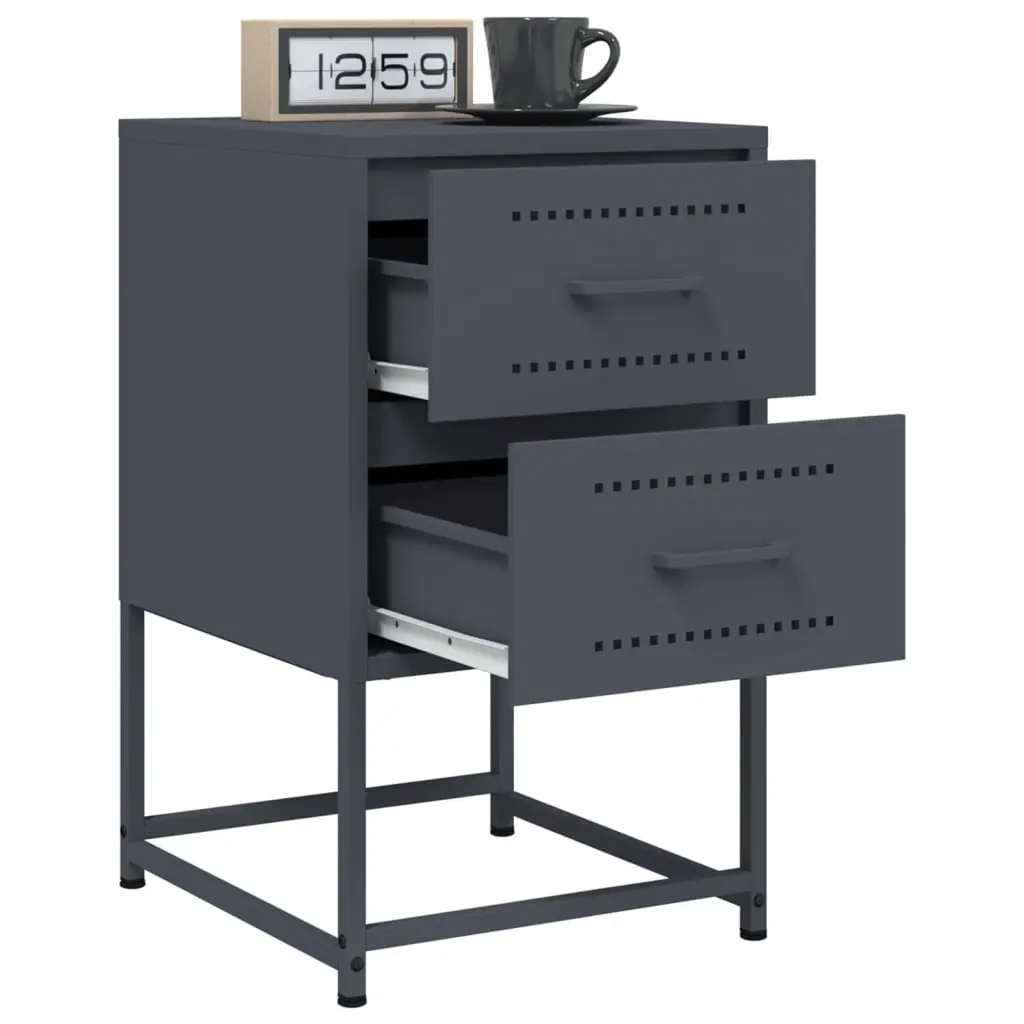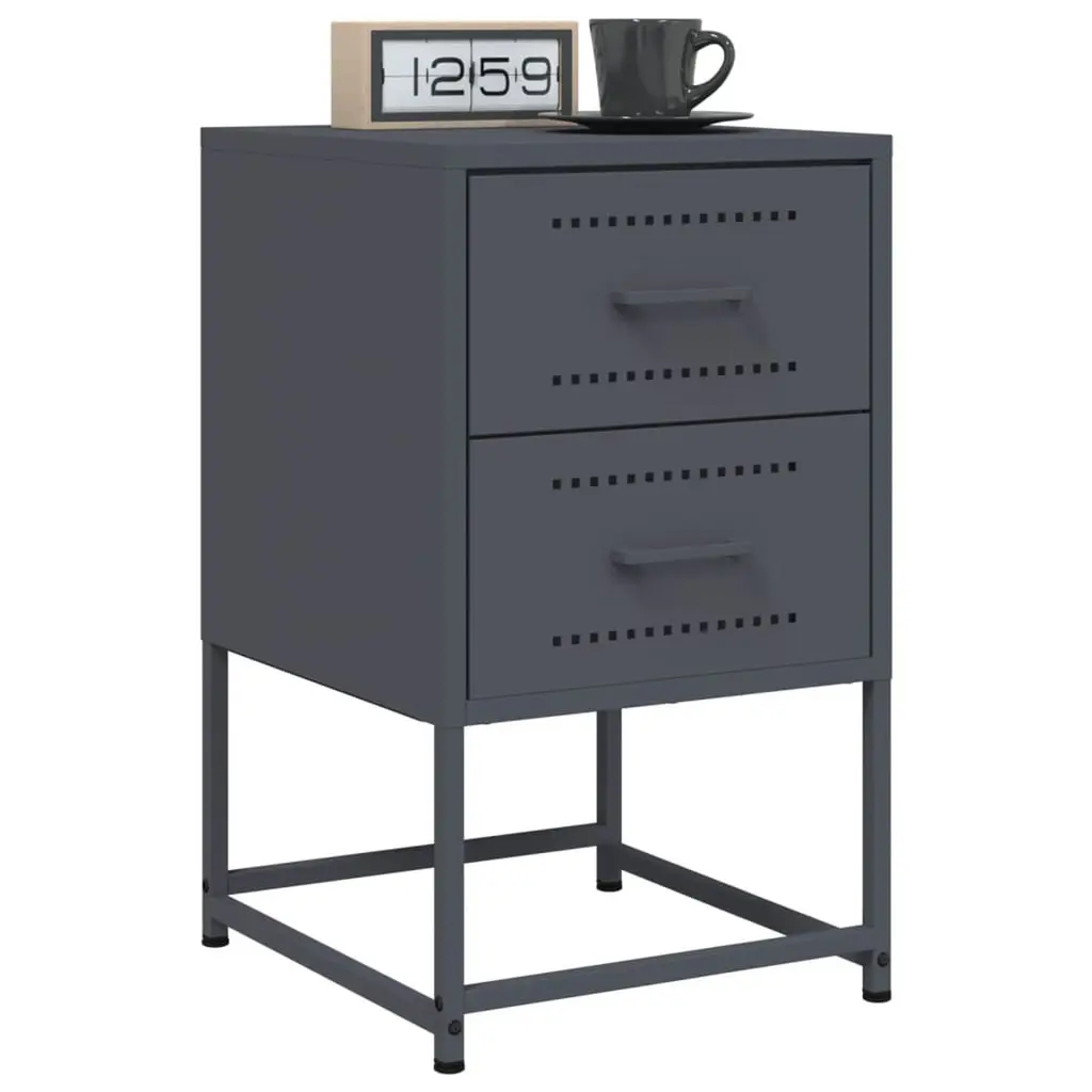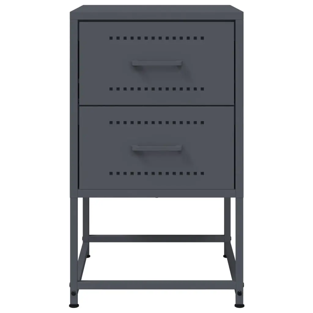 This bedside cabinet perfectly mixes industrial style with practicality, tailored for modern living spaces. With its snazzy anthracite color and sleek steel build, it makes for a real showstopper in any bedroom, providing storage while looking fab. Ample Storage: This bedside cabinet features two spacious traditional drawers that provide plenty of room to stash your essentials, keeping your bedroom tidy and free of clutter.Industrial Design: The design is all about inspiration from factories and urban lofts, with smooth, modern lines and solid build, making it a perfect match for modern or eclectic spaces.Durable Finish: Coated with a powder finish, this cabinet resists scratches and stains for easy cleaning, keeping it looking sharp for years.Sturdy Construction: Made from tough steel, this cabinet holds your bedside essentials like lamps and books with ease, built for everyday use.Multi-functional Uses: Perfect for bedside storage or as a chic side table in living areas or studies, adding variety to your furniture layout while keeping it stylish.