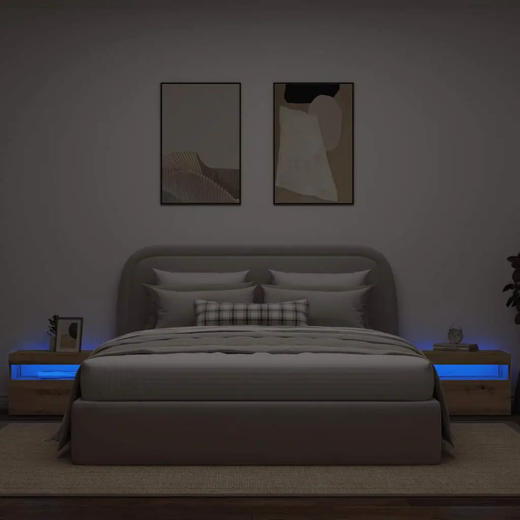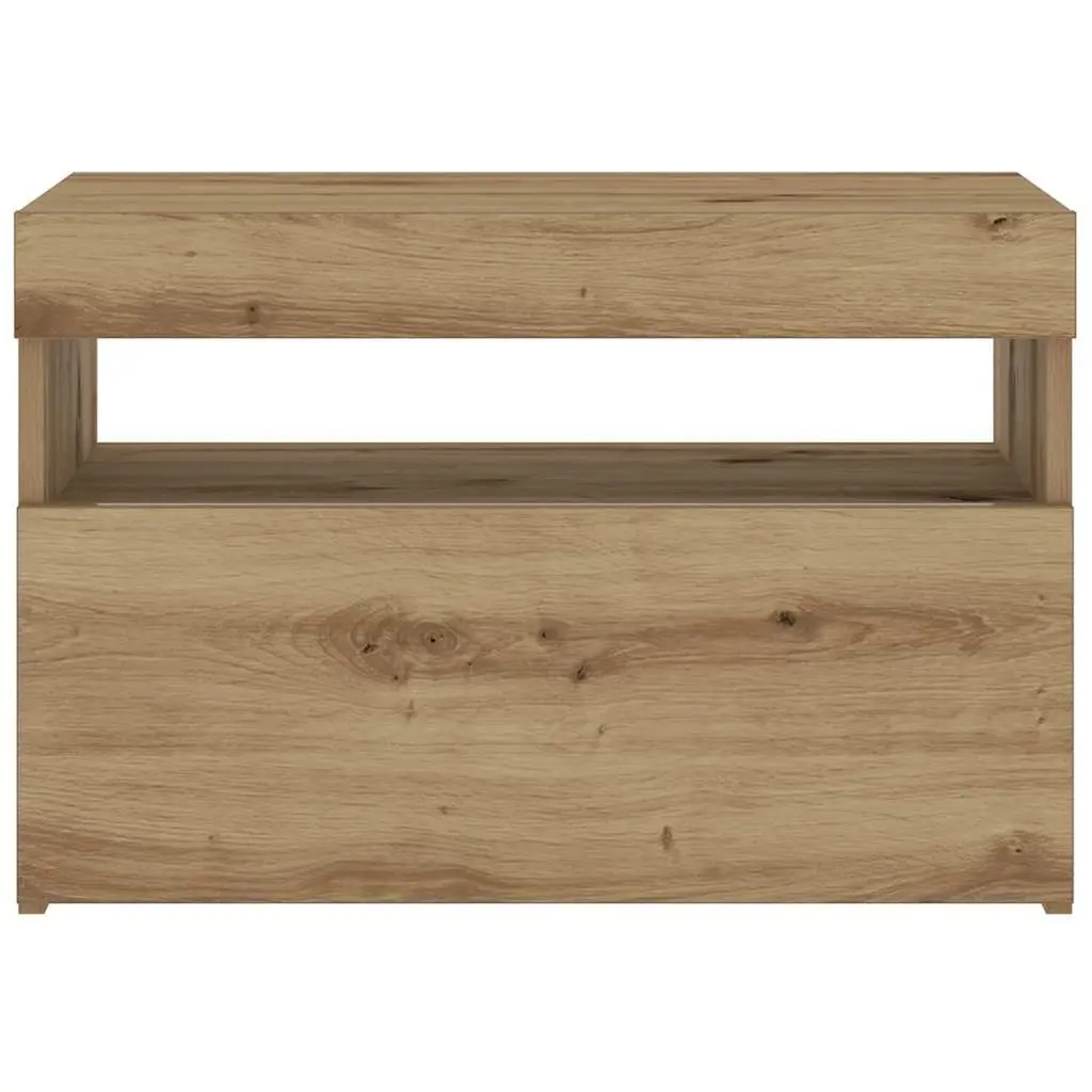 This bedside cabinet is all about style and practicality, perfect for those who love a sleek, modern vibe. It's spot on for bedrooms, with the Artisan Oak finish and LED lights adding a touch of elegance. It's not just about storing your things; it’s a snazzy accent piece too. Ample Storage: The cabinet has a big drawer and a built-in shelf to store things like books, glasses, or night-time essentials—keeping everything easy to find and your bedside neat.Built-In Lighting: Enjoy the handy RGB LED lights that brighten up the cabinet, helping you spot your items in the dark. It’s great for usability and adds a modern twist to your room.Versatile Design: Its sleek design and smooth finish make it a fitting match for different bedroom styles. Whether you want something minimalist or cozy, this cabinet ticks all the boxes.Robust Construction: Made from engineered wood, it’s tough and built to last, designed to handle daily use while keeping its classy look.Easy Assembly: Setting it up is a breeze, requiring just a screwdriver, so anyone can get it ready quickly.