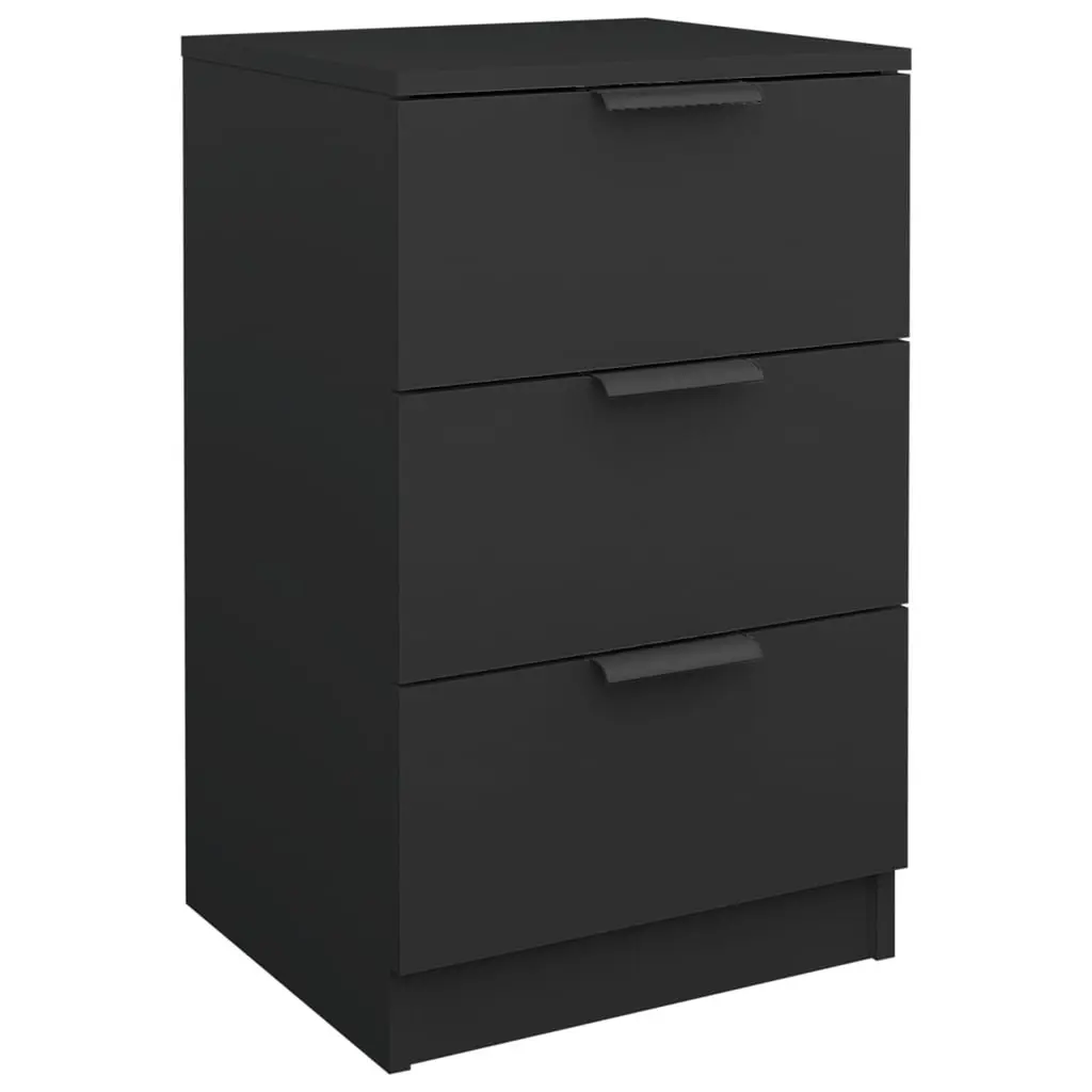 This industrial-style bedside cabinet mixes functionality with a striking look, making it a great addition to bedrooms or living spaces. Made of high-quality engineered wood and strong iron, it's finished in a deep black that really shows off its sleek vibe, providing timeless charm while being a practical storage option. Stunning Industrial Design: The cabinet showcases an industrial style inspired by urban lofts and warehouses, making it a perfect statement piece for modern decor. Its matte black finish adds sophistication and fits nicely with different room themes. This design gives it visual appeal while also ensuring it's strong enough for daily use.Adjustable Feet for Stability: The adjustable feet make sure the cabinet stands firm and steady on any surface, even if your floors are a bit dodgy. This means you can place it anywhere and it won't wobble.Spacious Storage Options: With three big drawers, this cabinet has plenty of space for your important stuff. Whether it’s books, personal items, or bedtime bits and bobs, everything has its spot, helping you keep your room neat and tidy.Craftsmanship Versatility: Built from engineered wood and tough metal, this cabinet is made to handle daily wear and tear. It’s stylish and practical, ensuring it stays a reliable part of your home for years. The smooth texture adds a nice touch to its rugged look.Ideal Dimensions: Measuring 15.7 in in length, 14.2 in in width, and 23.6 in tall, it’s perfectly sized for small spaces. This compact bedside cabinet sits nicely next to beds or sofas, ready to be used while staying out of your way.
