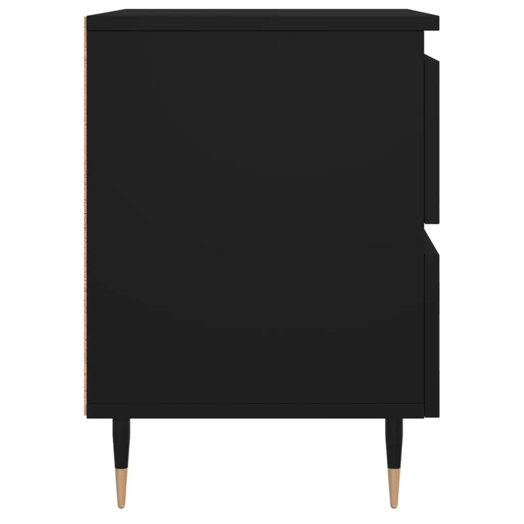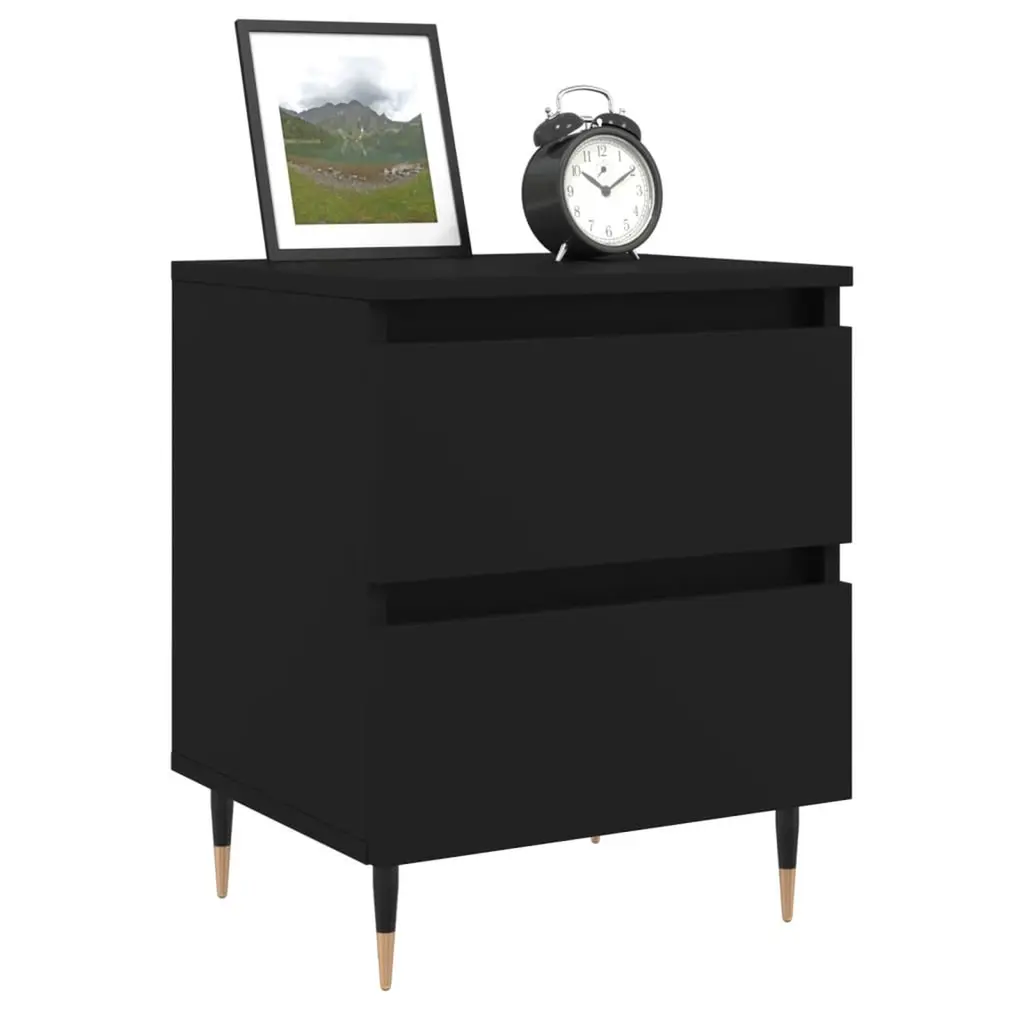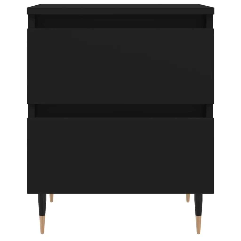 This bedside cabinet has a sleek and modern design, perfect for contemporary interiors. It offers practical storage solutions while enhancing your room’s look. Ideal for bedrooms or living rooms, this cabinet is both stylish and functional, providing easy access to your personal items. Ample Storage: The two drawers offer loads of space for books and personal bits, keeping everything within easy reach.Sturdy Construction: Made from engineered wood with iron legs, this cabinet is both good-looking and tough, ready to hold your stuff.Sleek Design: Its matte black finish blends well with different decors, boosting your room's look while making a bold statement.Easy Maintenance: Keeping this cabinet clean is a breeze; just wipe it down with a damp cloth to keep it looking new.Versatile Use: Use it as a nightstand, bedside drawers, or even an end table; it fits various needs for everyday life.